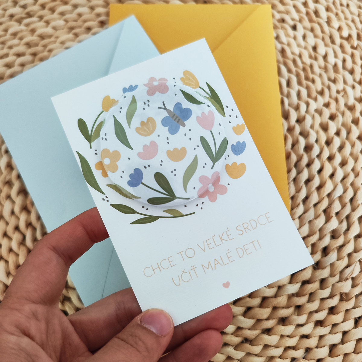 Priemer odznaku/magnetky je 58mm, rozmer pozdravu je 12x8cm.