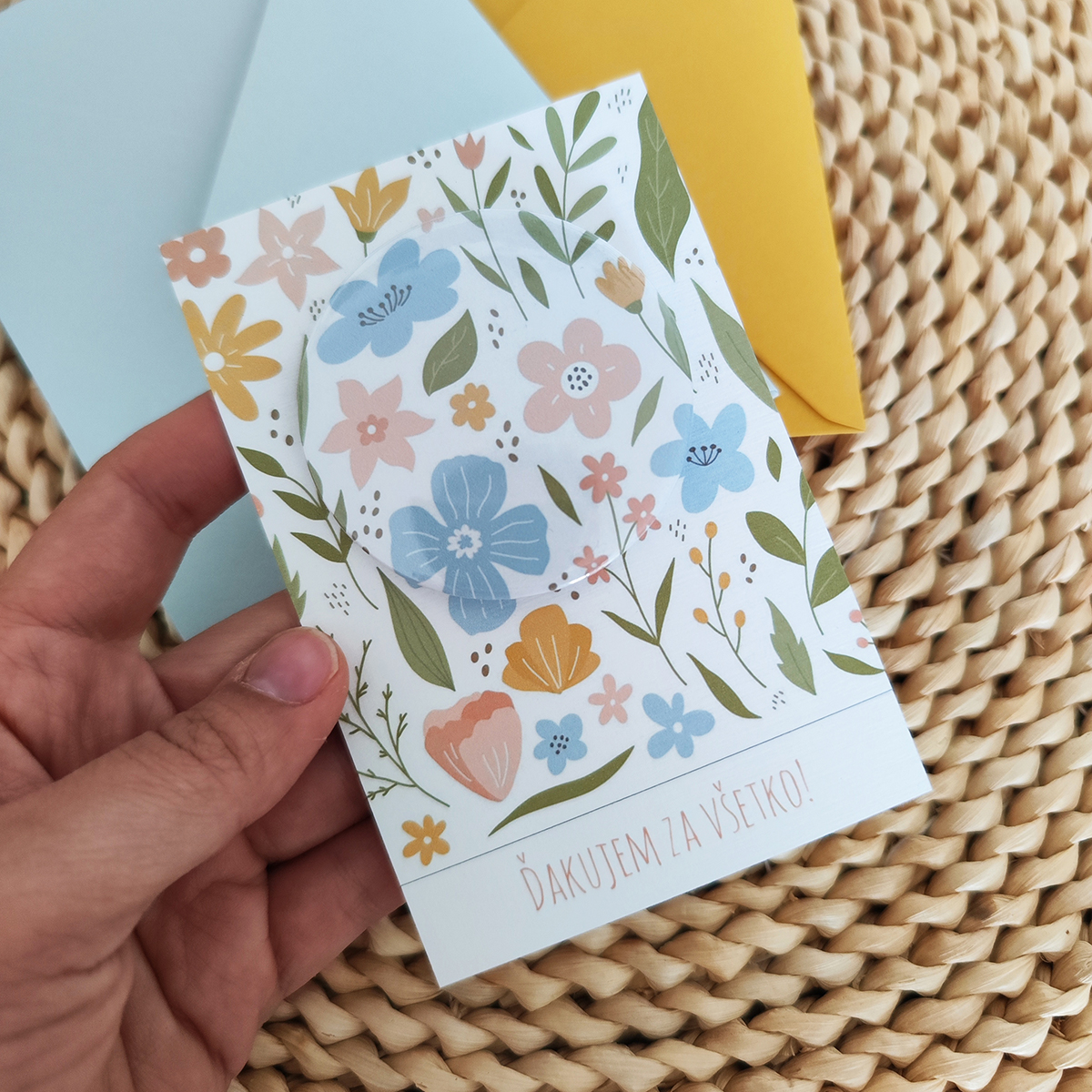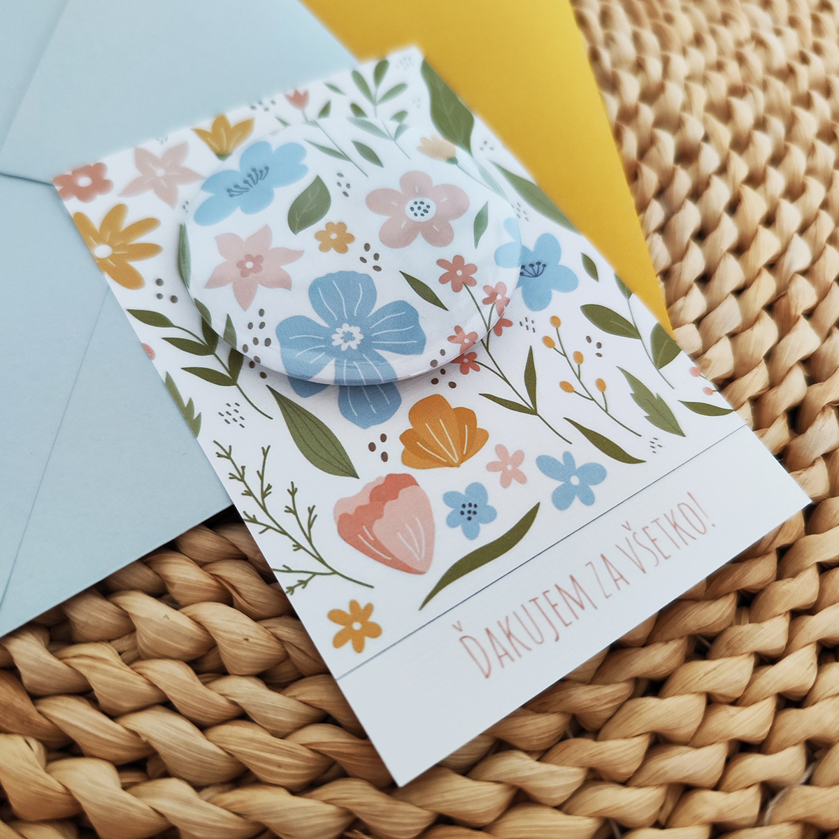 Priemer odznaku/magnetky je 58mm, rozmer pozdravu je 12x8cm.