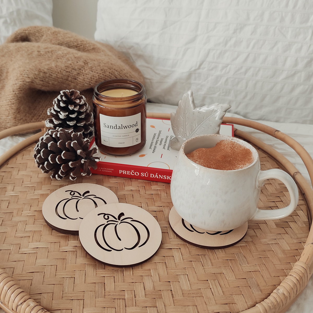 Set 4ks drevených podšálok s vygravírovanou tekvicou skvelo doplnia prestretý stôl alebo halloweensku oslavu. Podšálky nebudú len peknou dekoráciou v domácnosti, ale aj praktickým doplnkom.