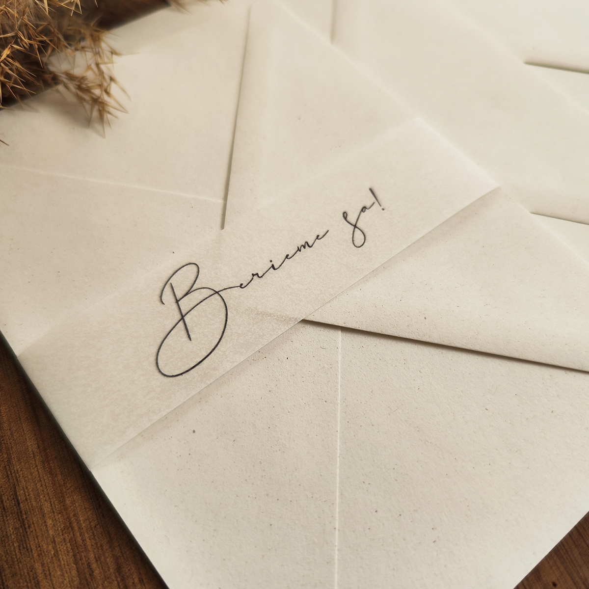 Pásik na obálku vyrobený z pauzovacieho papiera s čiernym textom. Pásik je dodávaný v rozloženom stave. Vy si ho doma zložíte a zlepíte podľa veľkosti obálky.