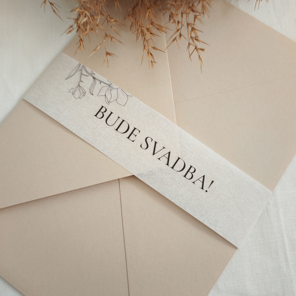Pásik na obálku vyrobený z pauzovacieho papiera s čiernym textom, doladený k oznámeniam Simple flowers, ale samozrejme si ho môžte zladiť s akýmikoľvek oznámeniami.