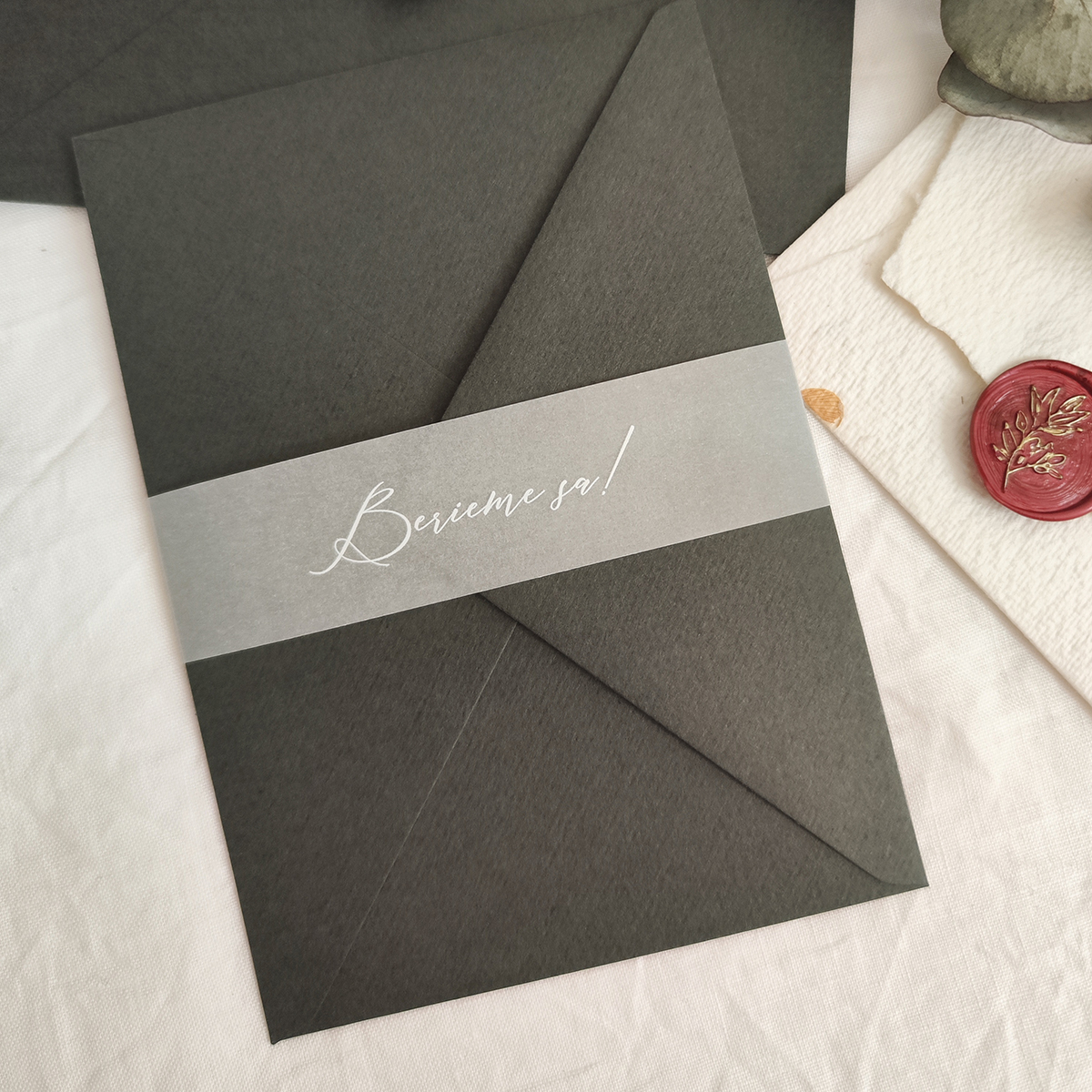 Pásik na obálku vyrobený z transparentného 90g papiera s bielym textom. Pásik je dodávaný v rozloženom stave. Vy si ho doma zložíte a zlepíte podľa veľkosti obálky.