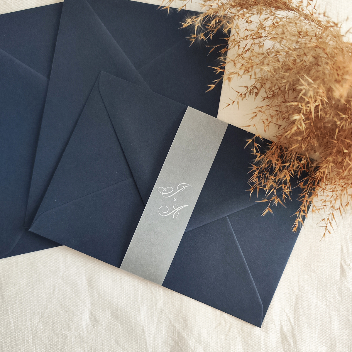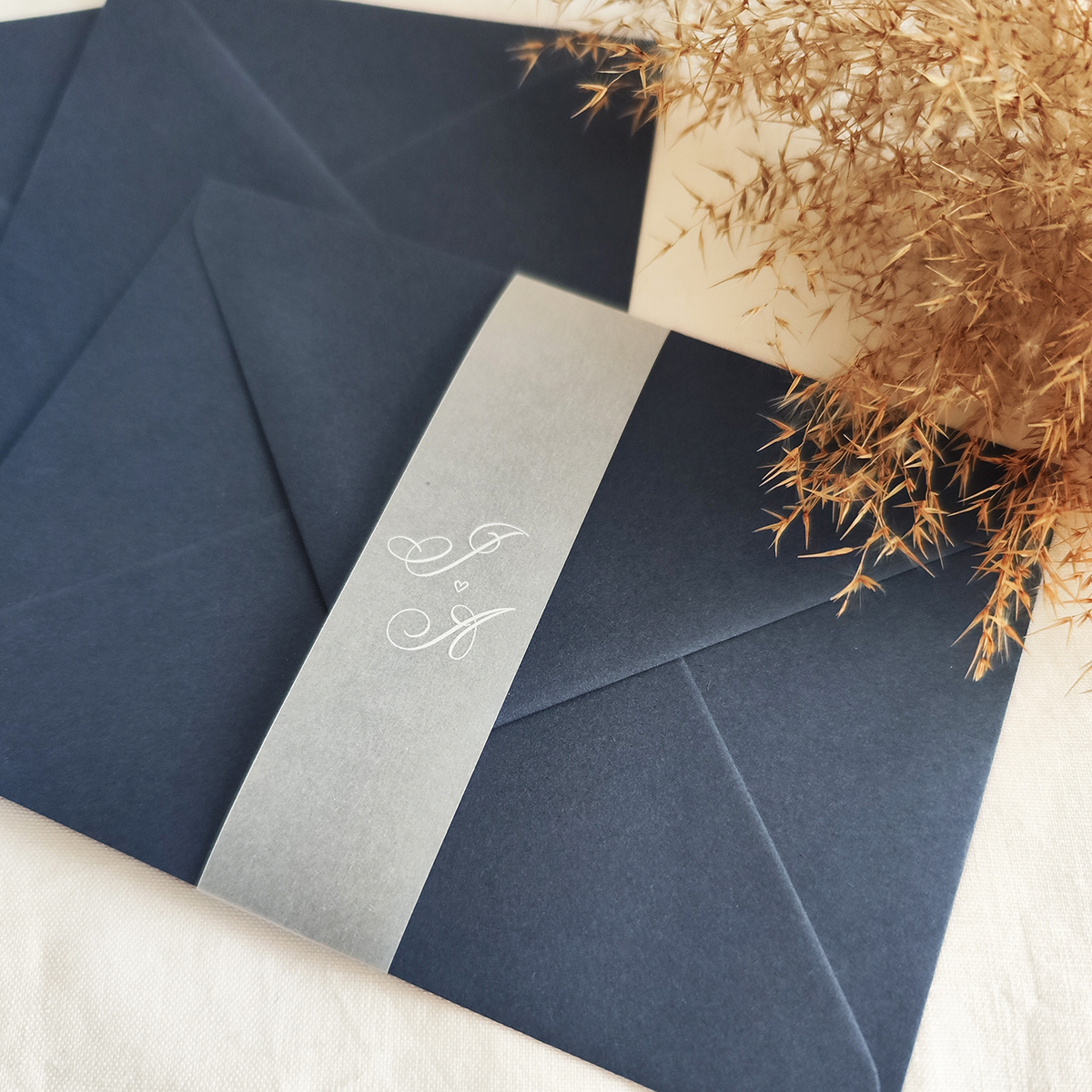 Pásik na obálku vyrobený z transparentného 90g papiera s bielym textom. Písmo na pásiku ladí s oznámeniami Palace white z našej ponuky.