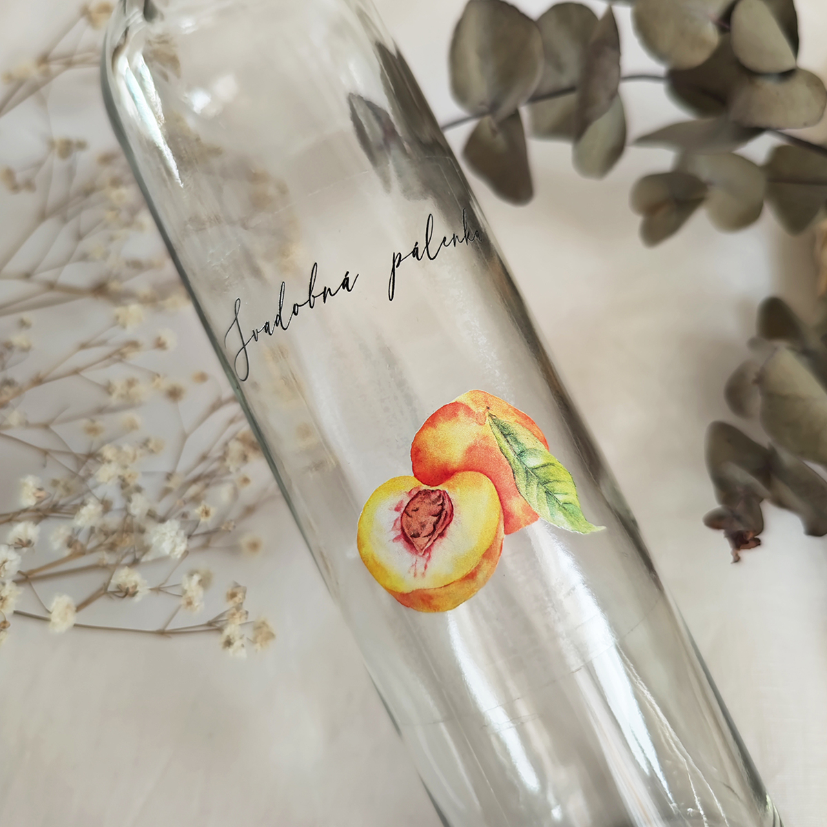 Samolepiace vodeodolné etikety na fľaše tlačené UV tlačou na kvalitnú priehľadnú fóliu.