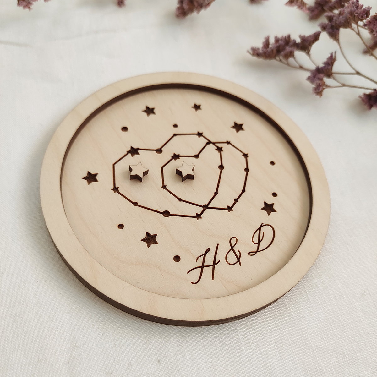 Drevený podnos na obrúčky v tvare kruhu vyrobený z kvalitnej preglejky hrúbky 4mm s prírodným hladkým povrchom. Podnos sa skladá sa z 2 vrstiev.