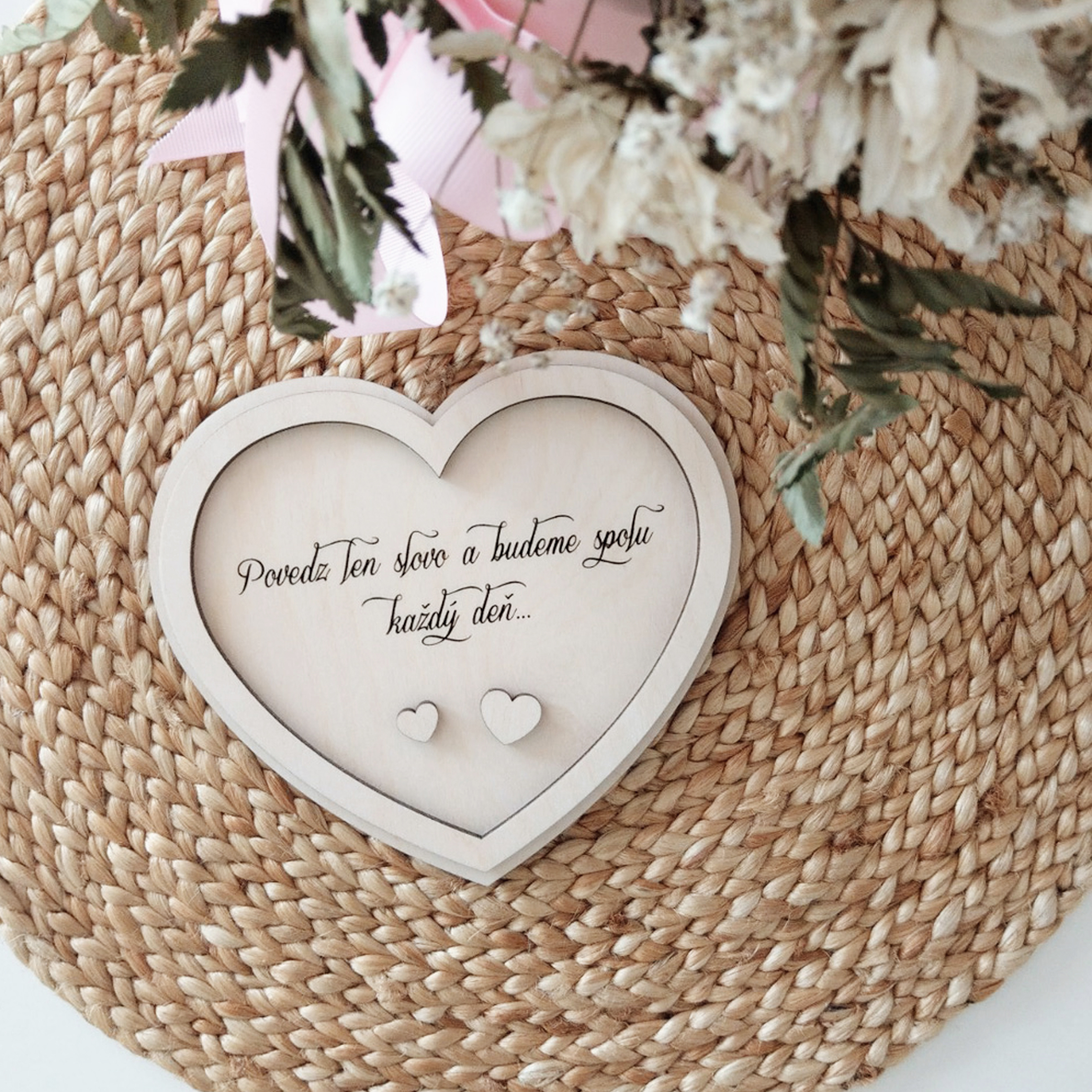 Drevený podnos na obrúčky v tvare srdiečka vyrobený z kvalitnej preglejky hrúbky 4mm s prírodným hladkým povrchom. Podnos sa skladá sa z 2 vrstiev.