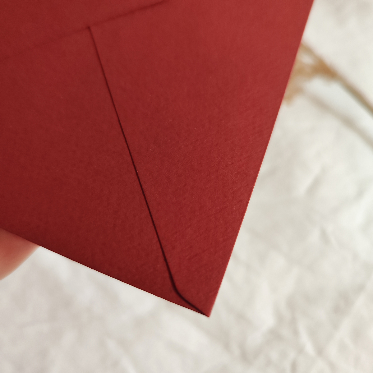Obálky majú klasické vlhčiace zatváranie na dlhšej strane a sú vyrobené z vysoko kvalitného farebného papiera hrúbky 140 g/m2 vyrobeného s ohľadom na životné prostredie.
