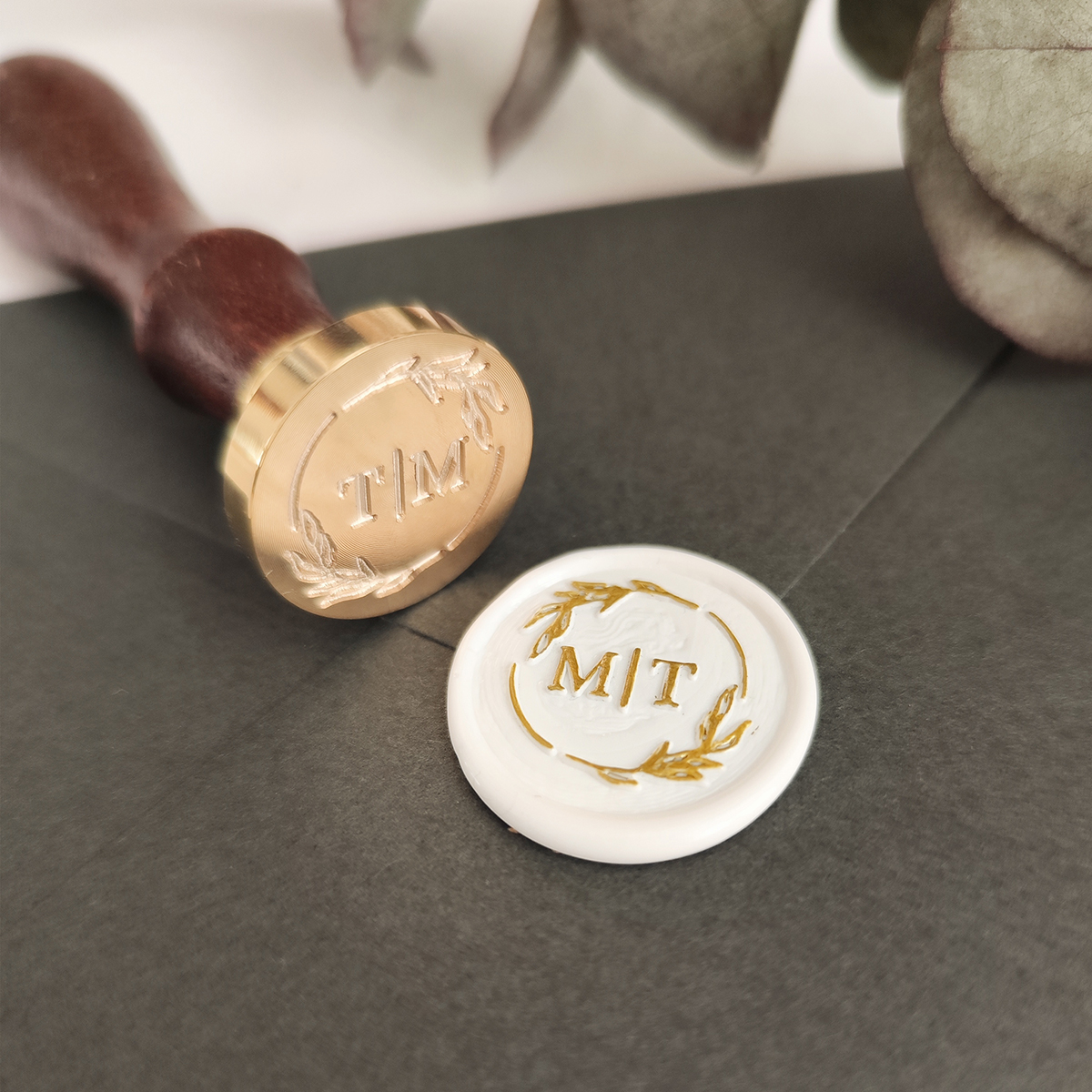 Výroba pečatidla na mieru s vetvičkami s vašimi iniciálmi. Takéto originálne pečatidlo môžte potom používať na dozdobenie napr. svadobných oznámení, obálok, scrapbooking alebo firemných tlačovín.