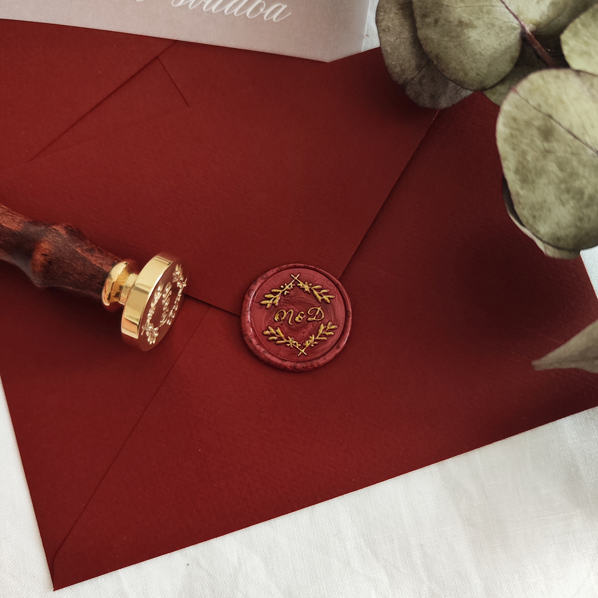 Výroba pečatidla na mieru s vetvičkami s vašimi iniciálmi. Takéto originálne pečatidlo môžte potom používať na dozdobenie napr. svadobných oznámení, obálok, scrapbooking alebo firemných tlačovín.