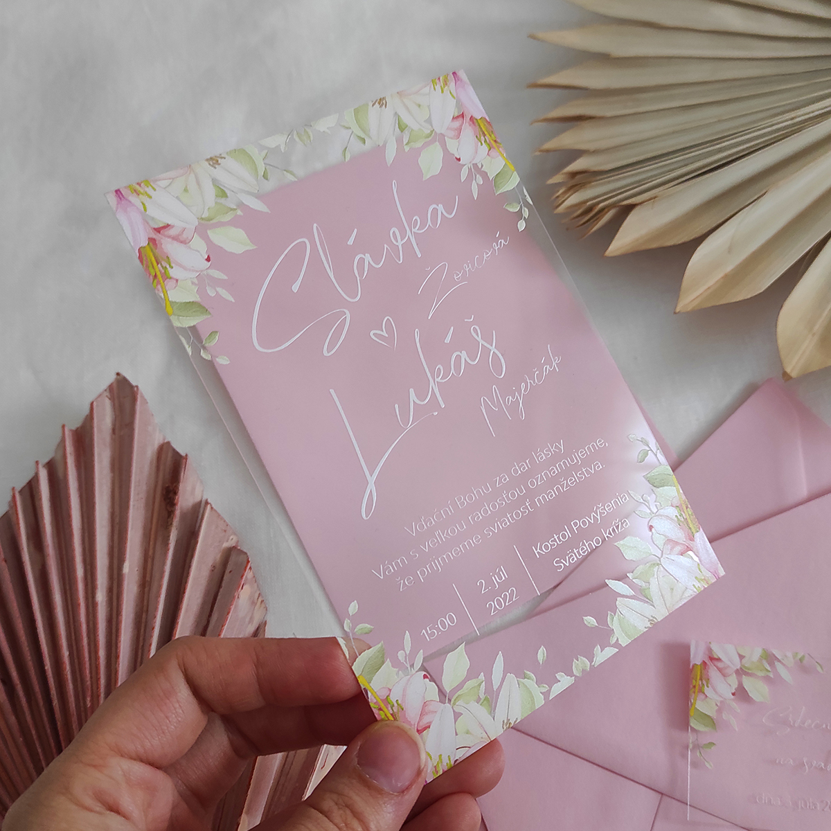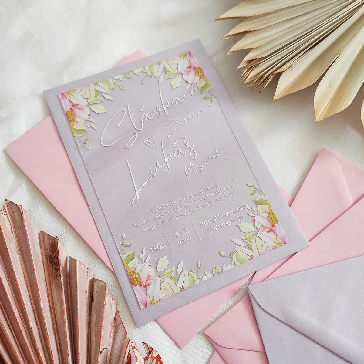 ideatree, oznámenie, svadba, svadobné oznámenie, transparentné oznámenie, priesvitné, kvety, nové mesto nad váhom