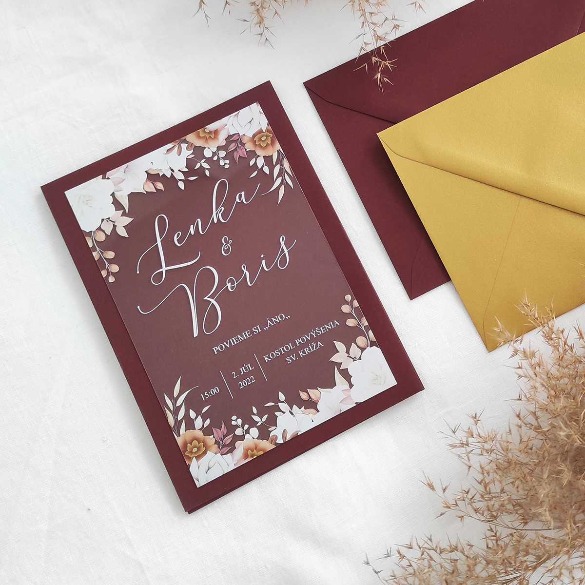 ideatree, oznámenie, svadba, svadobné oznámenie, transparentné oznámenie, priesvitné, kvety, nové mesto nad váhom