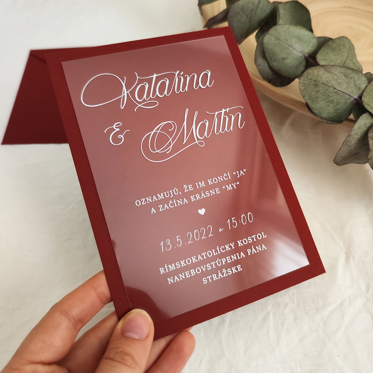 Jednoduché a zároveň veľmi štýlové a moderné transparentné oznámenie. Oznámenie je tlačené bielou UV tlačou na transparentné plexi. Vďaka UV tlači je text mierne vystúpený, akoby 3D.