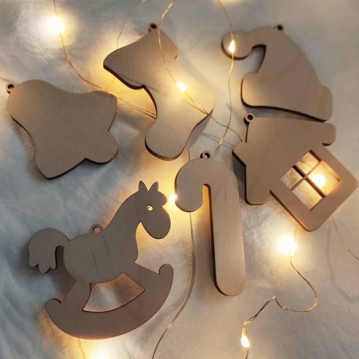 Ozdoby sú vyrezané z preglejky hrúbky 4mm. Povrch prebrúsený do hladka.