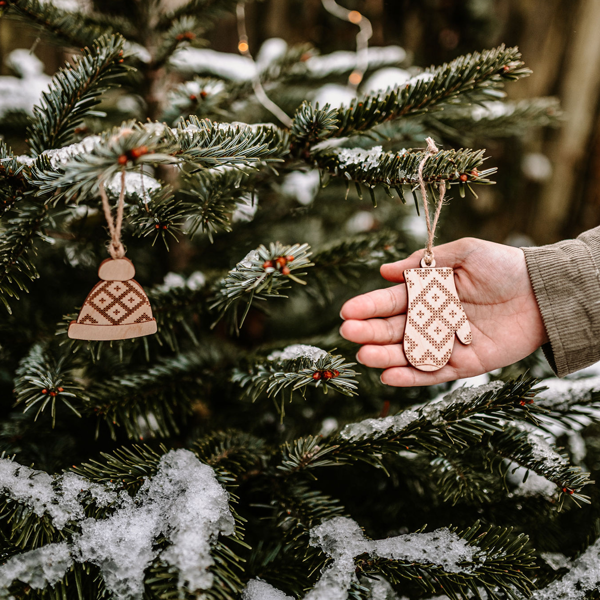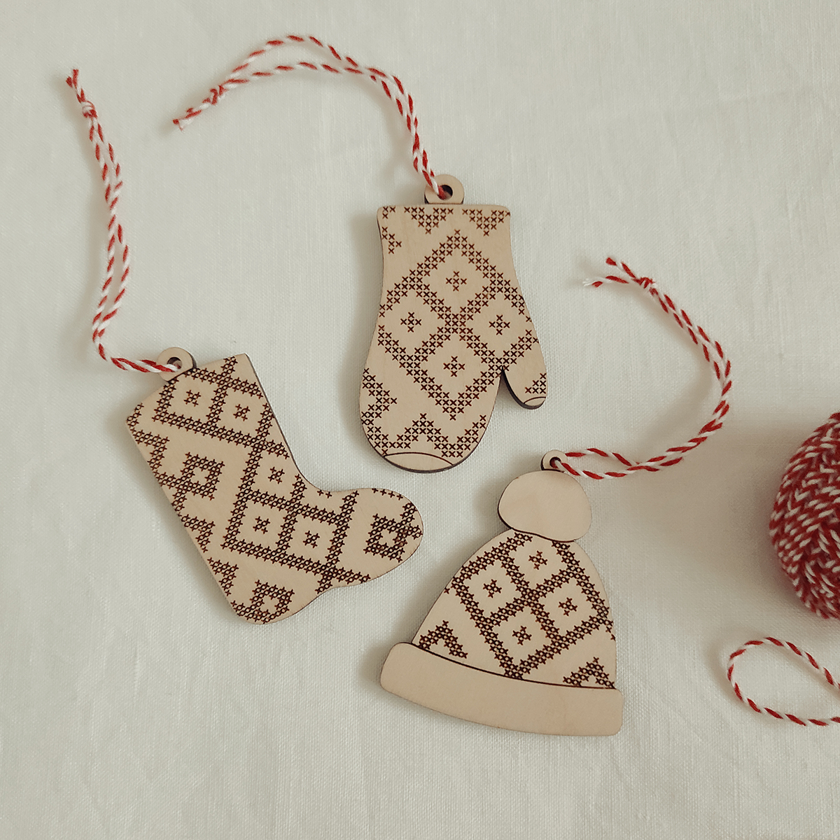 Sada 3 ks drevených gravírovaných ozdôb s vyšívaným motívom - čiapka, rukavica a čižma. Sada je dodávaná v darčekovom balení. Ozdôbky tak môžte darovať.