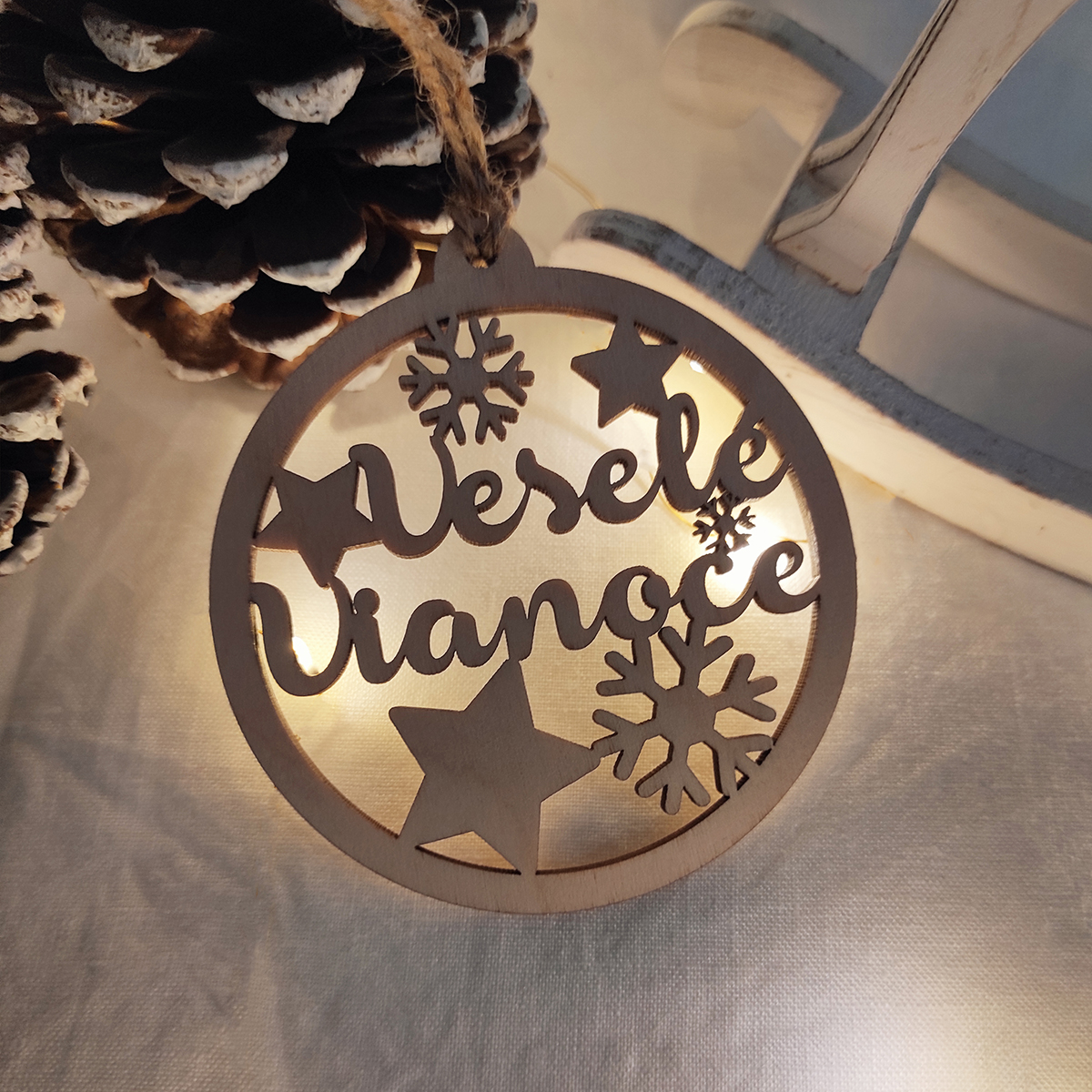 Vianočná ozdoba je vyrobená z preglejky hrúbky 4mm, povrch je prírodný, prebrúsený do hladka.