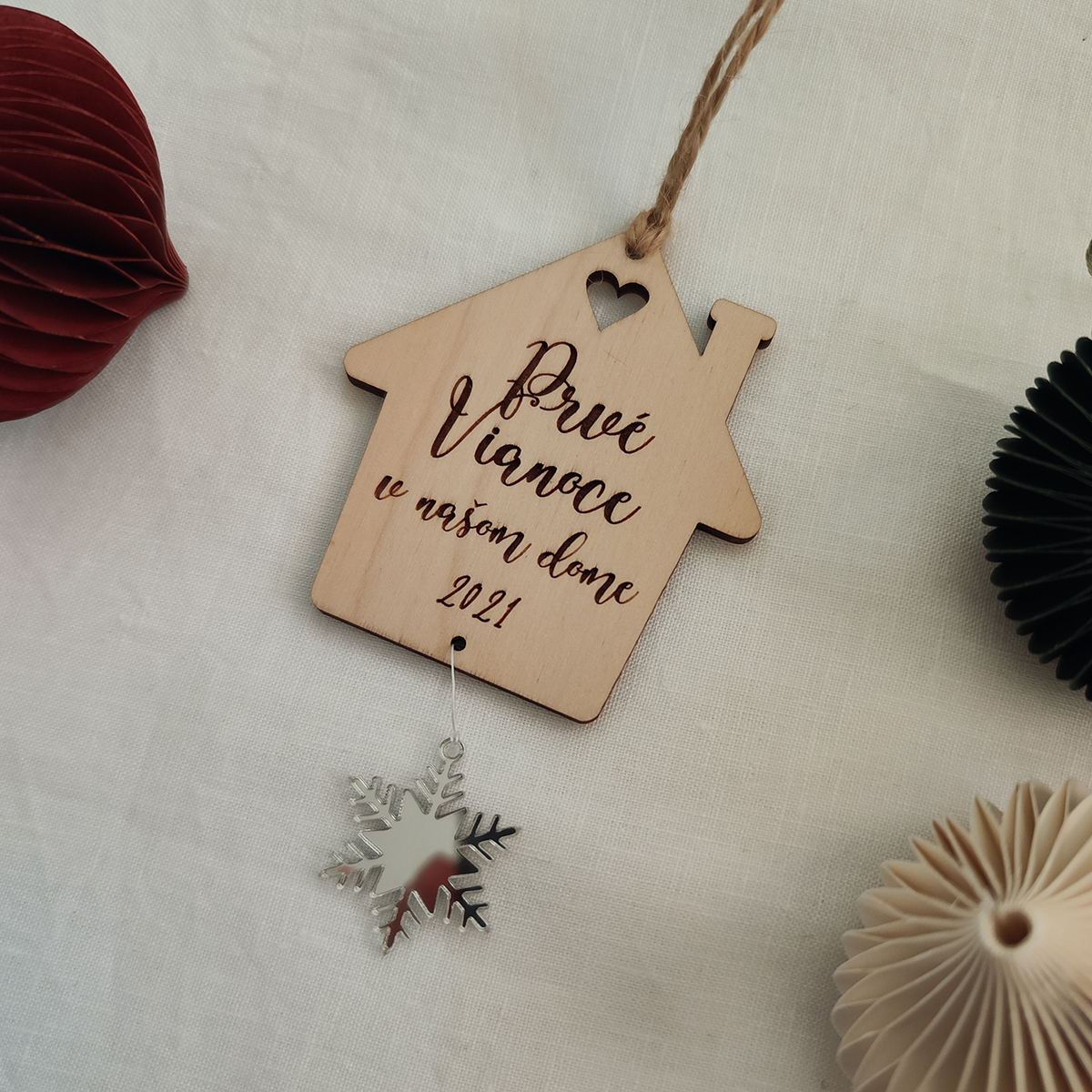 Presťahovali ste sa do nového alebo ste postavili domček a budete v ňom tráviť prvé Vianoce? Táto ozdoba bude na vianočnom stromčeku každý rok krásnou spomienkou na prvé Vianoce vo vašom novom príbytku.