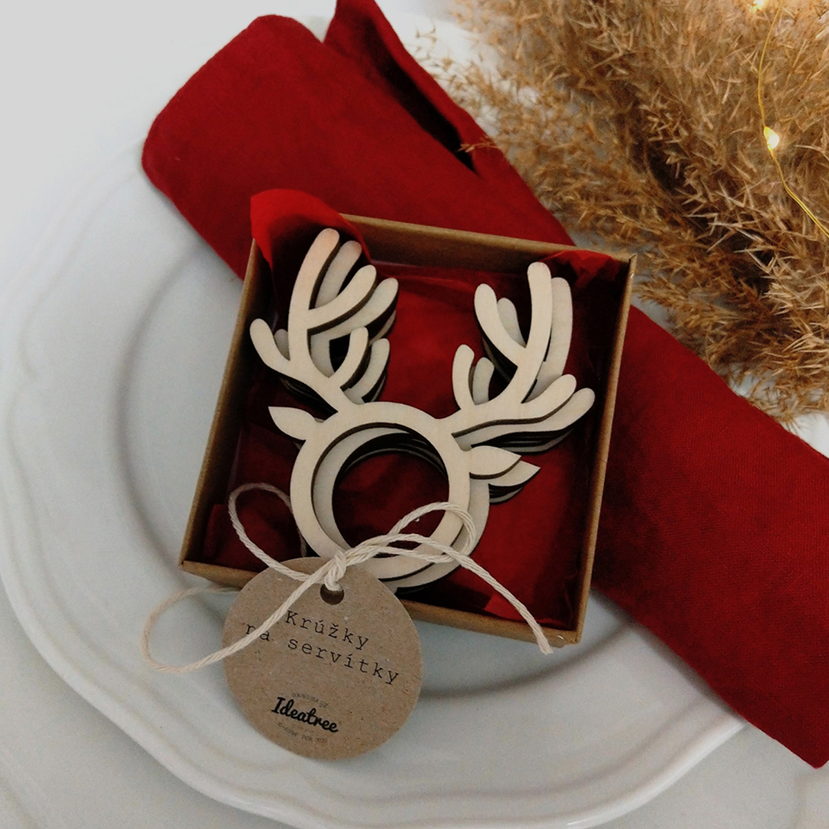 Set je dodávaný v darčekovej krabičke s vianočným papierom a recyklovaným štítkom. Po Vianociach si tak môžte krúžky starostlivo odložiť na ďalší rok.