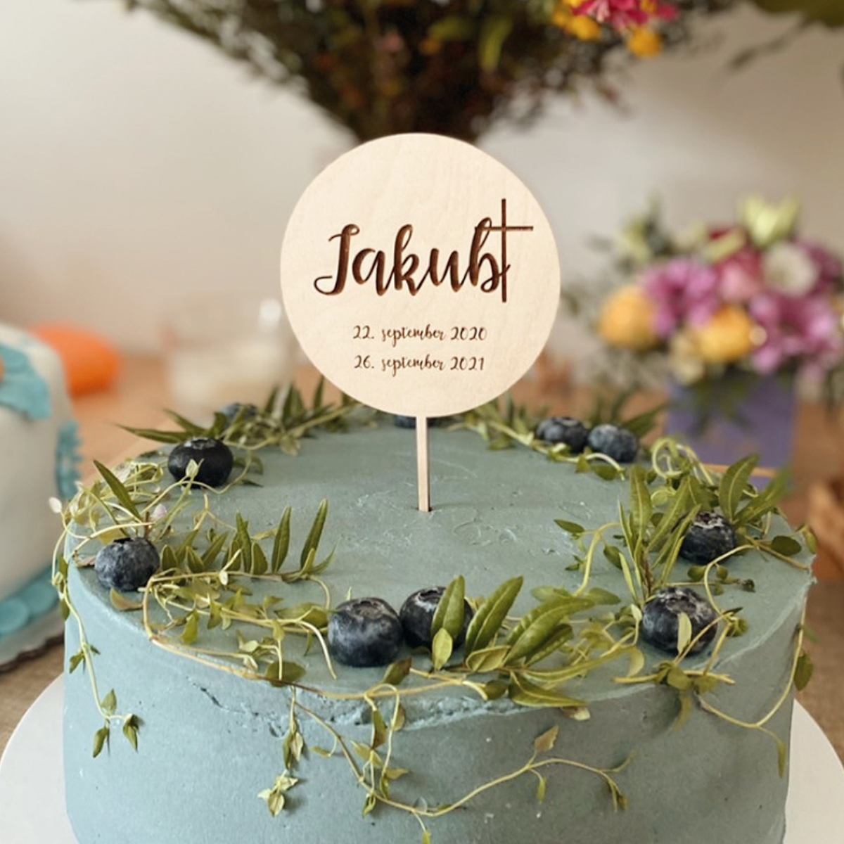 Drevený zápich na tortu môžte využiť na tortu a koláče alebo ako dekoráciu. Ideálny na tortu k oslave krstu, keďže na zápichu je krížik a dva dátumy - dátum narodenia a dátum krstu. Zápich je vyrobený z kvalitnej preglejky hrúbky 4mm.