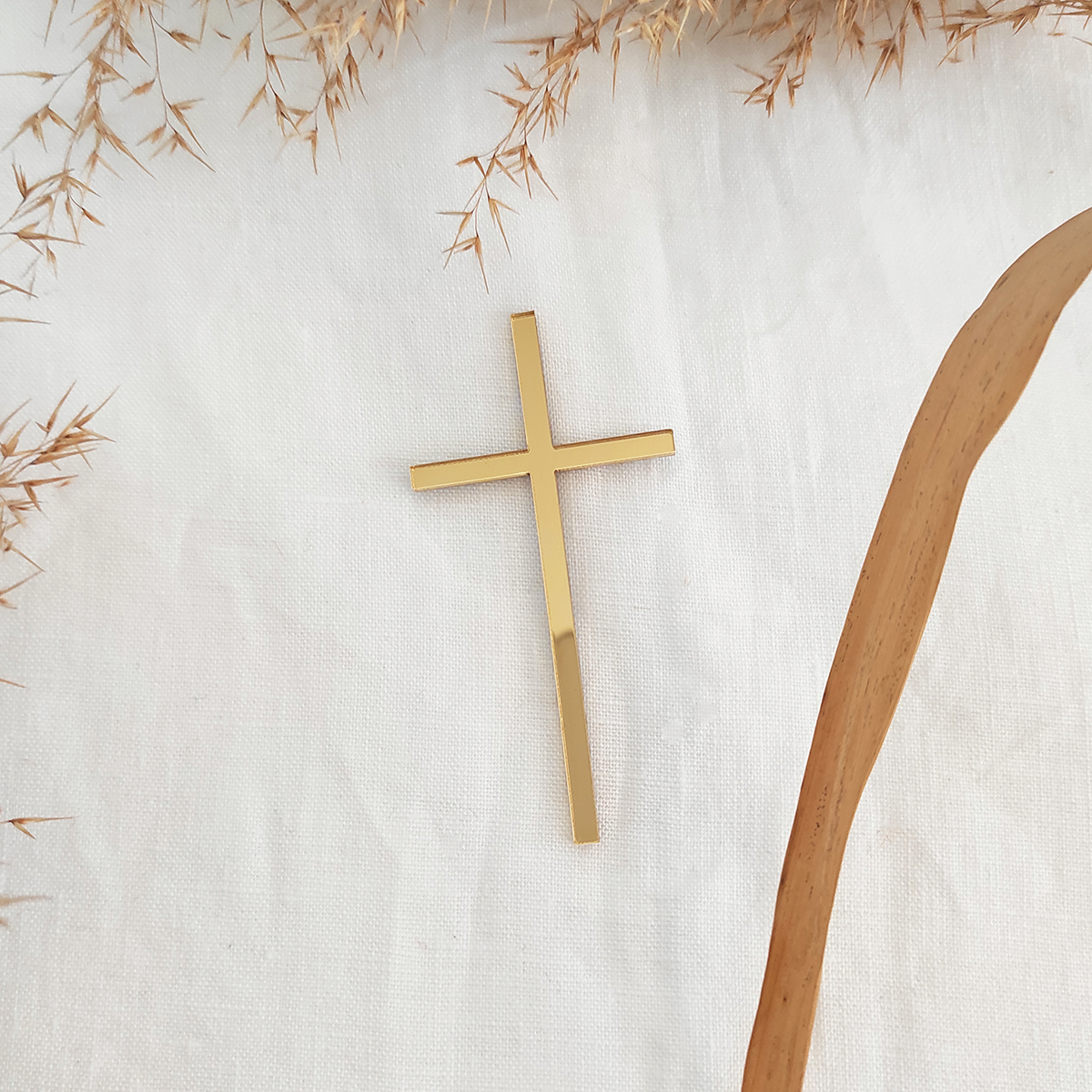 Vyrezávaná luxusná dekorácia na tortu zo strieborného alebo zlatého zrkadlového plexiskla. Dekoráciu môžte využiť na bok torty na krst alebo prijímanie.