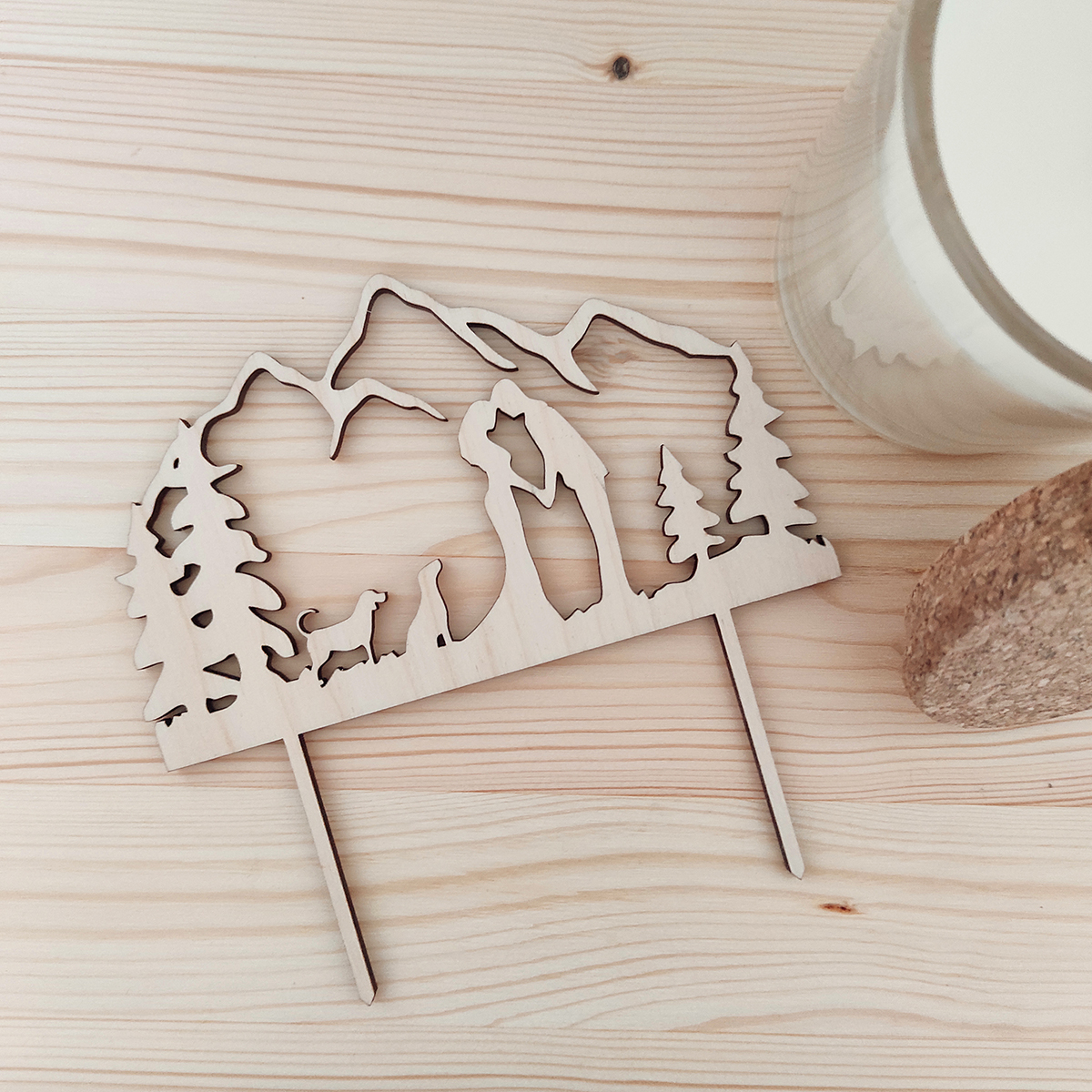 Drevený zápich na tortu v tvare hôr skvelo doplní tématickú svadobnú či zásnubnú tortu alebo koláč. Ideálny na tortu pre milovníkov prírody a hôr. Zápich je vyrobený z kvalitnej preglejky hrúbky 4mm.