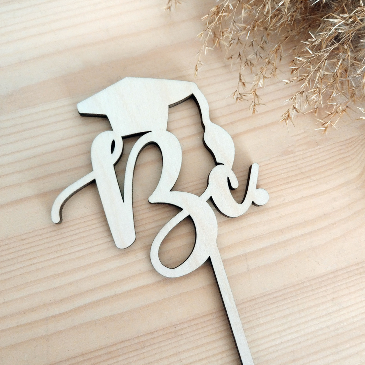 Drevený zápich na tortu s titulom Bc. môžte využiť na tortu a koláče alebo ako dekoráciu k oslave promócií a úspešného ukončenia štúdia. Zápich je vyrobený z kvalitnej preglejky hrúbky 4mm.