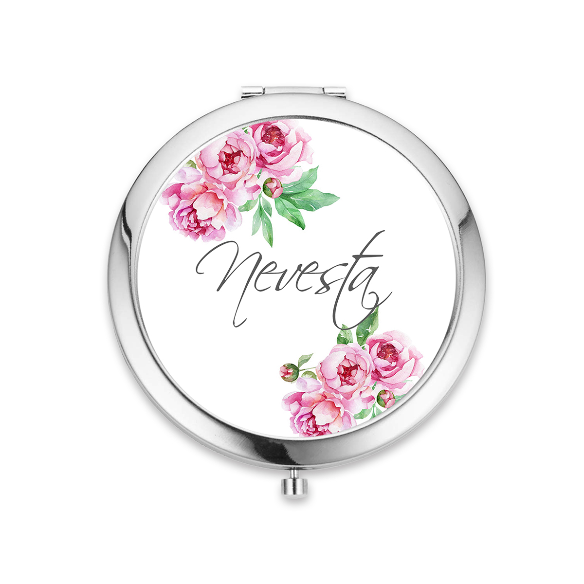 Kvalitné zrkadielko do kabelky s jednoduchým otváraním pomocou stlačenia. Zrkadielko je milým aj praktickým darčekom na rôzne príležitosti - napr. pre družičky, nevestu, svedkyňu, svadobné mamy, kamarátky, maminku, sestru a pod. Vo vnútri sú dve zrkadielka. Zrkadielko je z bižutérneho kovu bez obsahu niklu, olova a kadmia a grafický obrázok je pod vrstvou živice. Obrázok má priemer 57mm.