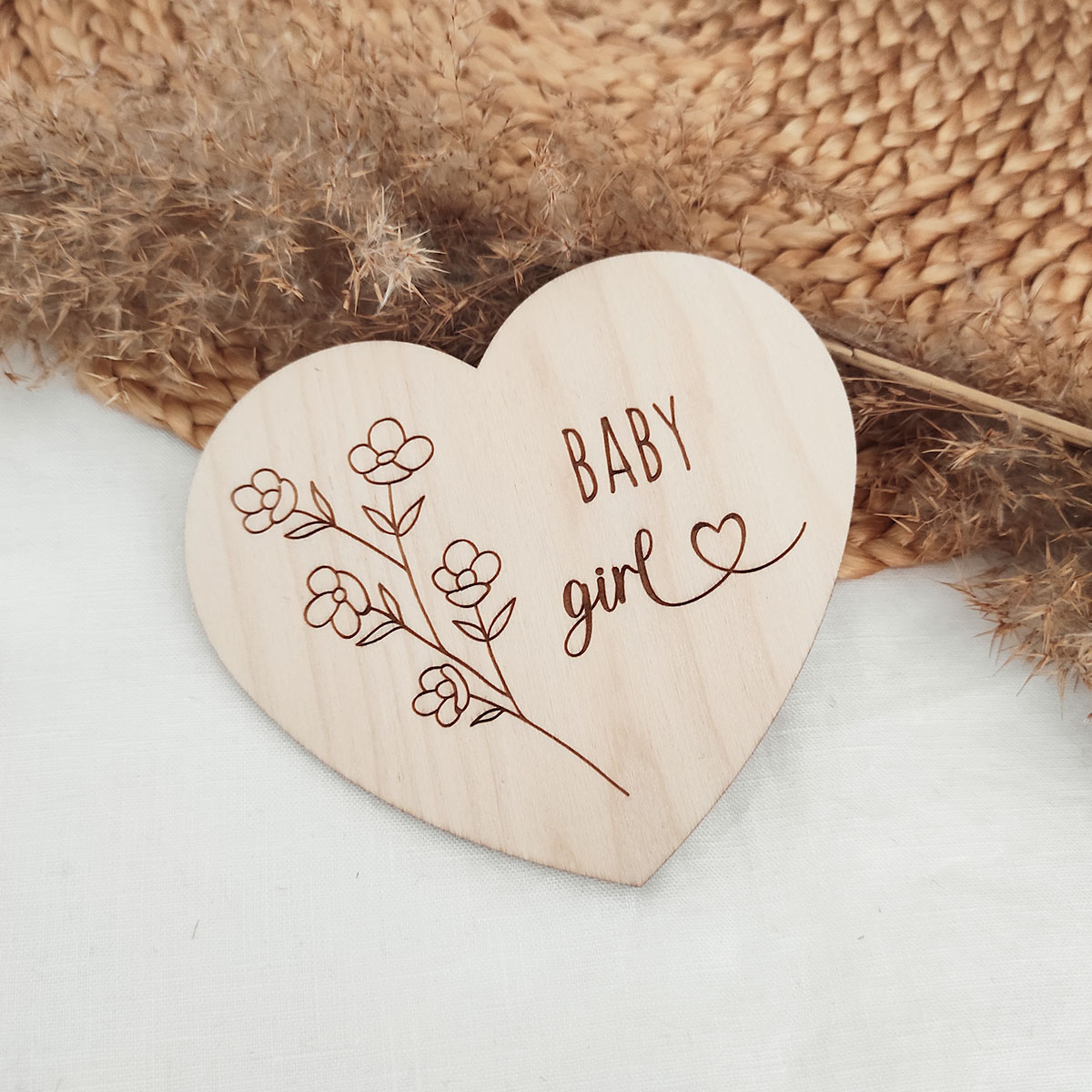 Miľníčky nemusia byť len v tvare kruhu. Vyrobili sme pre to túto originálnu miľníčkovú tabuľku v tvare srdiečka s vygravírovaným textom Baby girl.