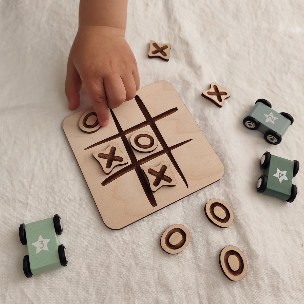 Sada obsahuje: hracie pole, 5ks X, 5ks O a vrecúško, vďaka ktorému sa hra nestratí a môžte si ju vziať aj na cestovanie.