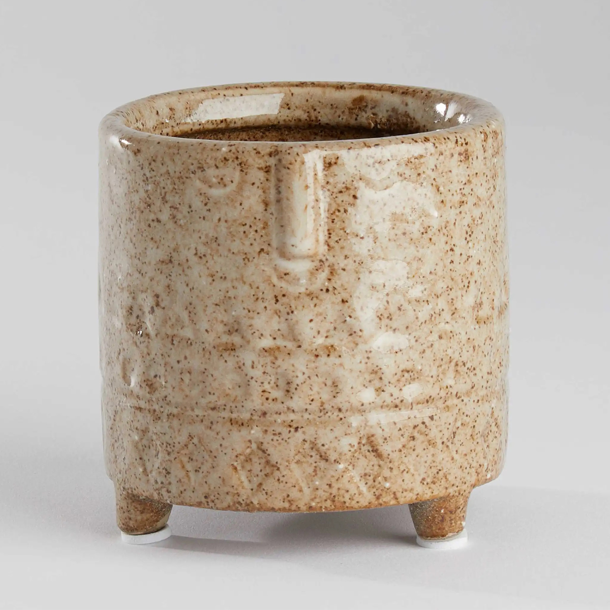 Svetlohnedý kvetináč v boho štýle s motívom tváre bude ideálny na malý kaktus alebo sukulent.