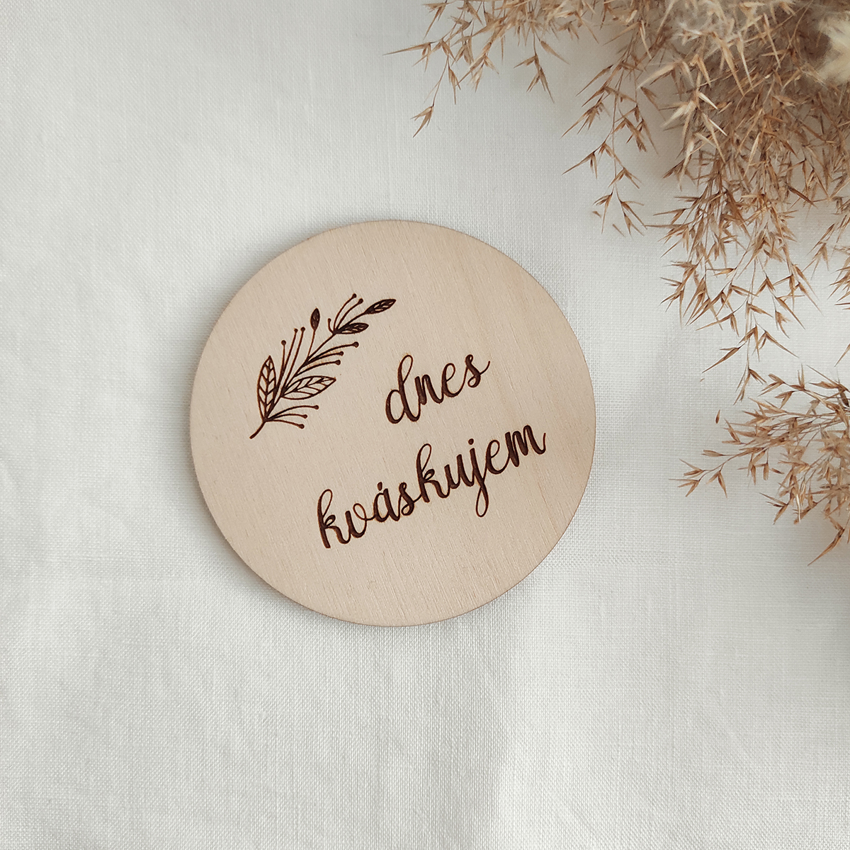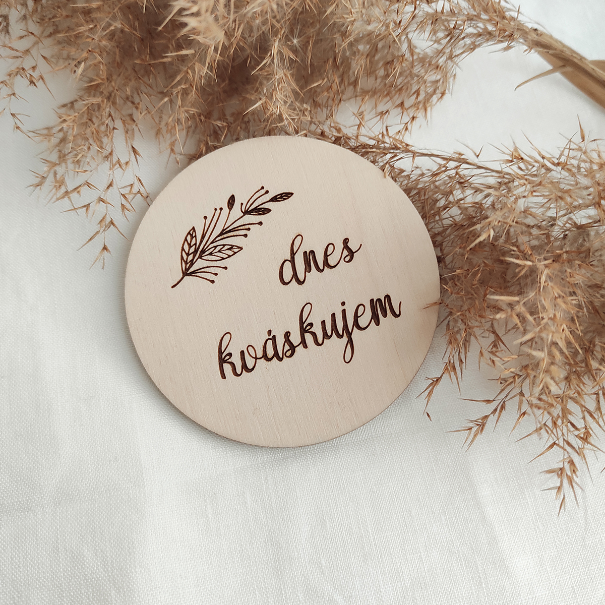 Originálna miľníčková tabuľka v tvare kruhu s vygravírovaným textom vhodná pre všetkých, ktorý milujú kváskovanie. Tabuľku môžte využiť ako dekoráciu na fotenie alebo ako darček.