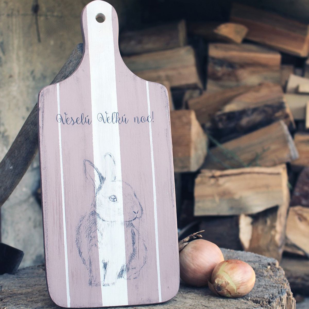 Dekoračný drevený lopár s veľkonočným motívom je maľovaný ekologickými farbami, dozdobený transfer technikou a prelakovaný. Lopár môžte využiť ako dekoráciu na kuchynskej linke alebo ho zavesiť na stenu. Krásne vynikne aj na chalupe.