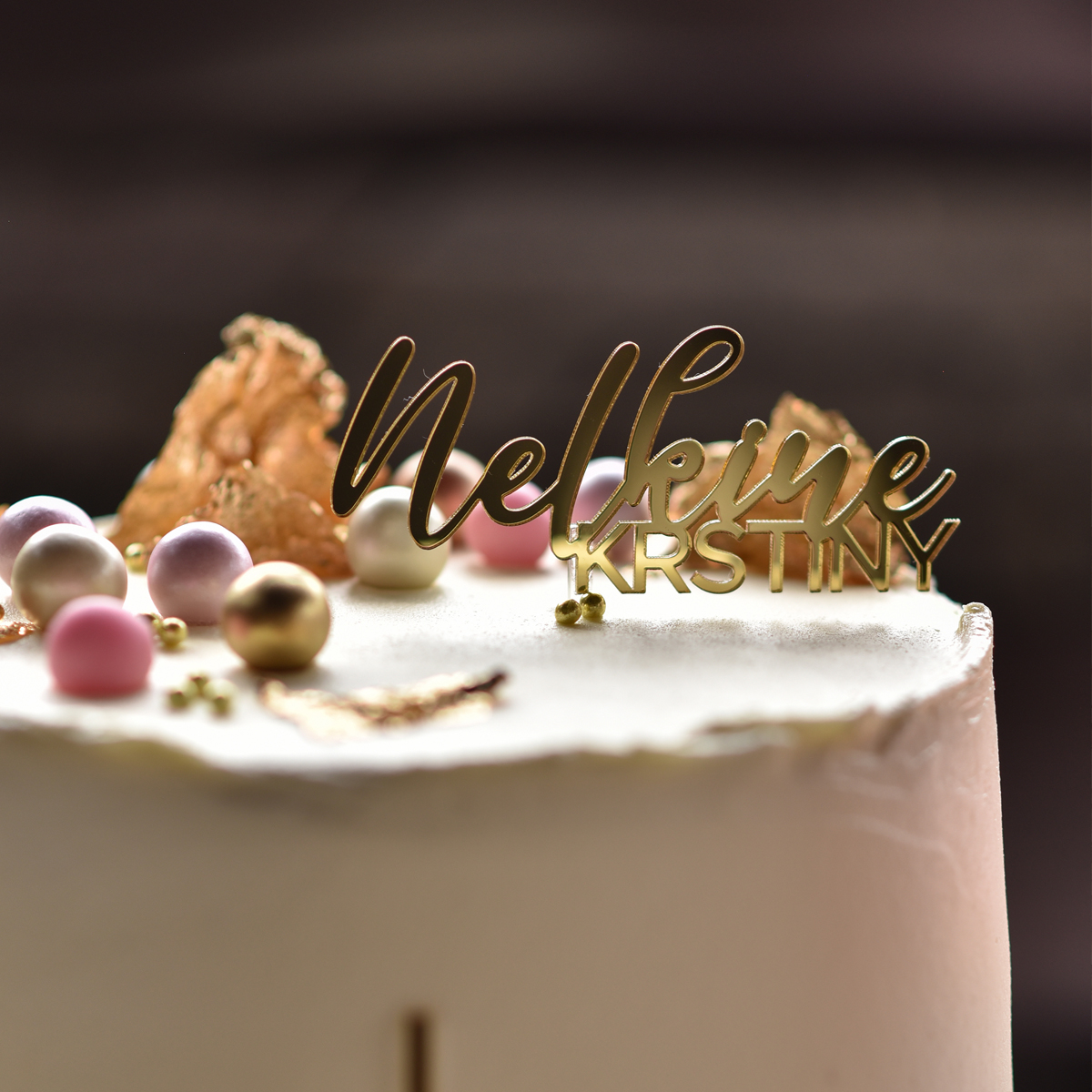 Vyrezávaný luxusný zápich na tortu zo strieborného alebo zlatého zrkadlového plexiskla. Zápich na tortu môžte využiť na tortu na krst.