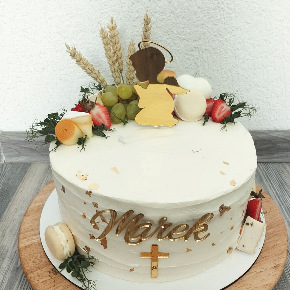 Vyrezávaný luxusný zápich na tortu zo strieborného alebo zlatého zrkadlového plexiskla. Zápich na tortu môžte využiť na tortu na krst alebo prijímanie alebo ako dekoráciu.