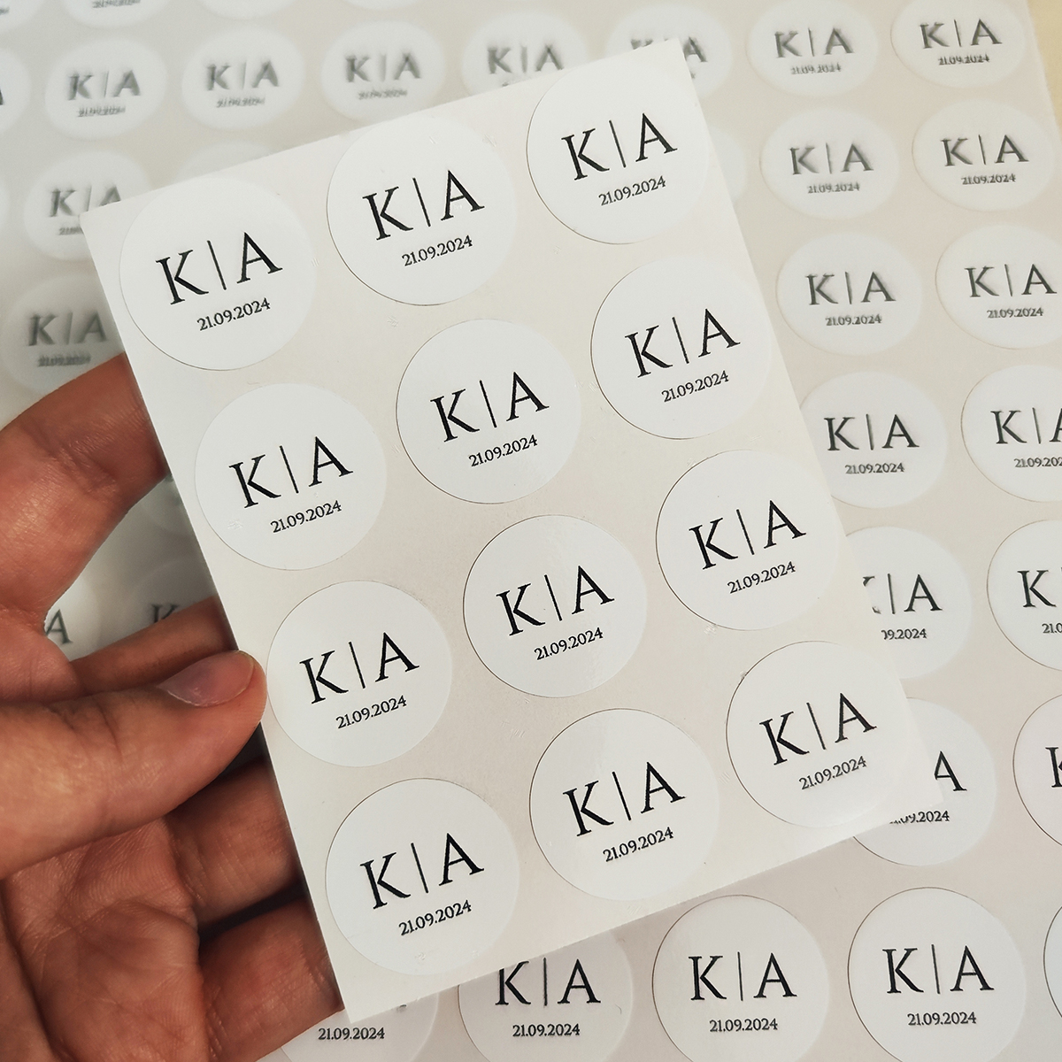 Nálepky sú tlačené UV tlačou na kvalitnú lesklú bielu fóliu.