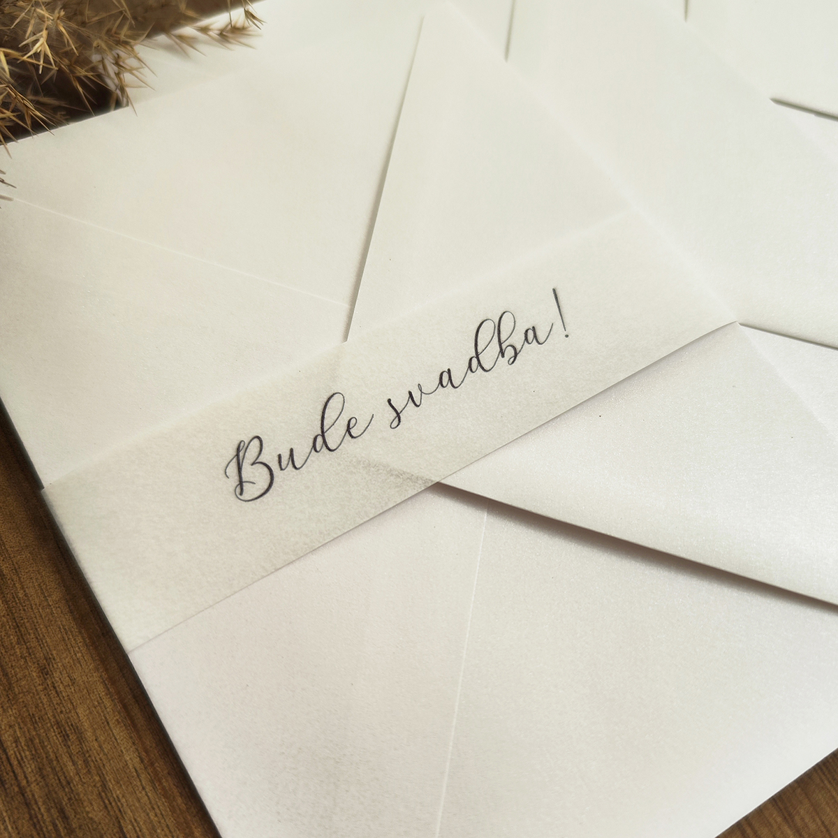 Pásik na obálku vyrobený z pauzovacieho papiera s čiernym textom. Pásik je dodávaný v rozloženom stave. Vy si ho doma zložíte a zlepíte podľa veľkosti obálky.