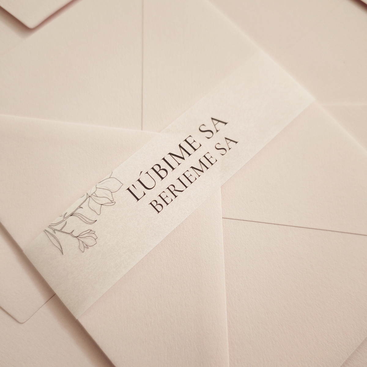 Pásik na obálku vyrobený z pauzovacieho papiera s čiernym textom, doladený k oznámeniam Simple flowers, ale samozrejme si ho môžte zladiť s akýmikoľvek oznámeniami.