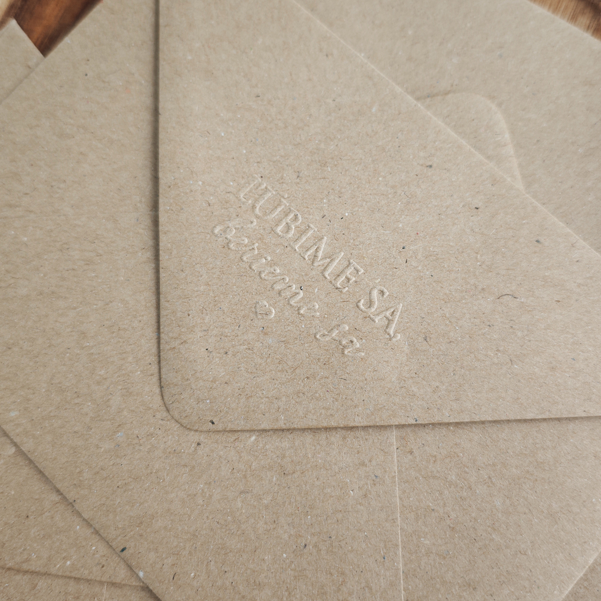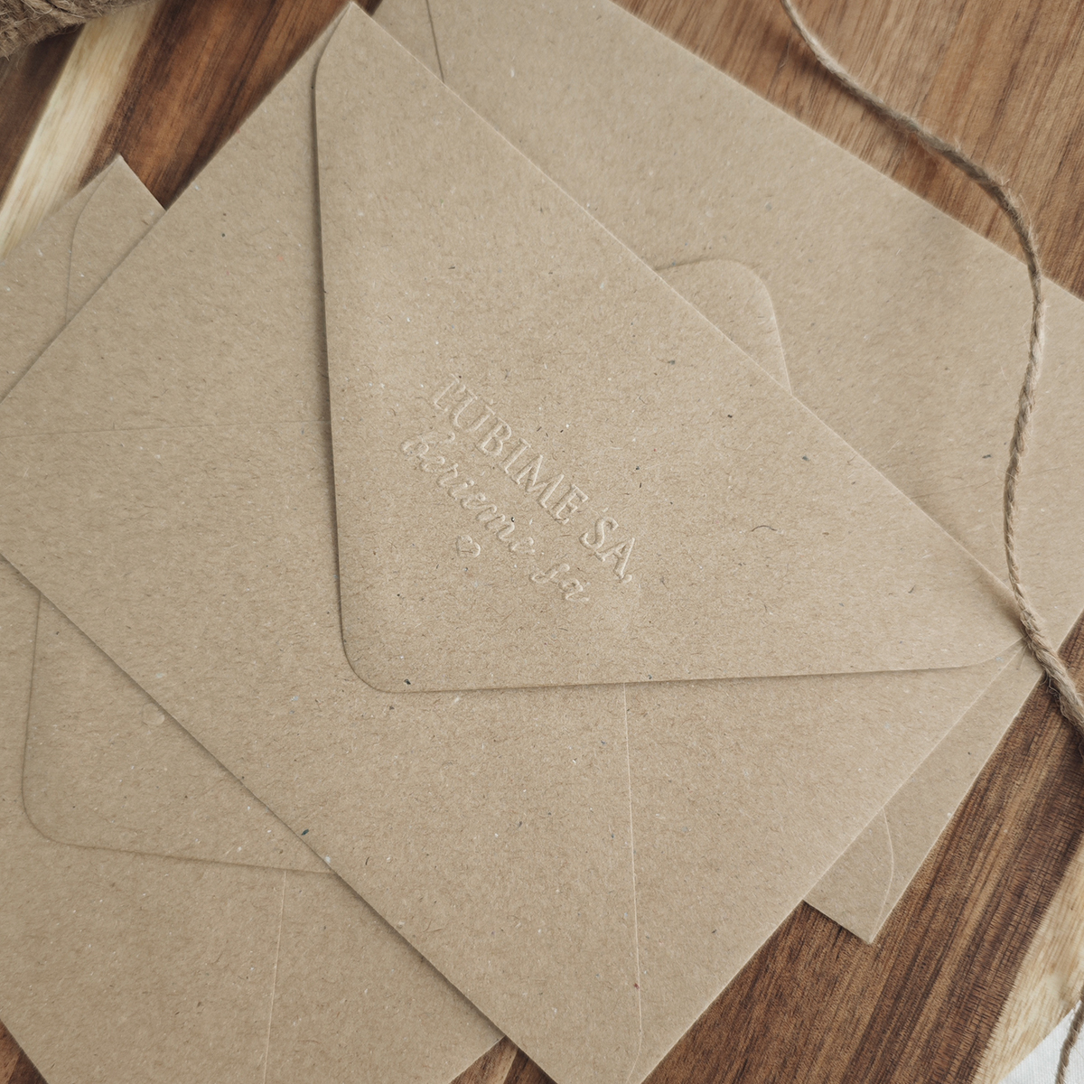 Obálka v klasickej veľkosti C6 (114x162mm) vhodná na svadobné oznámenia, pozvánky alebo pohľadnice. Obálka má vyrazený text ľúbime sa, berieme sa.