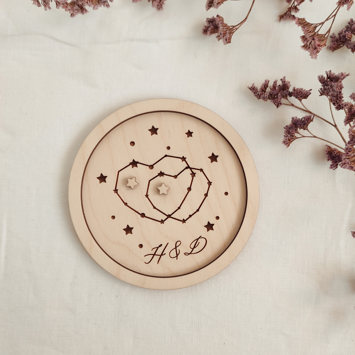 Drevený podnos na obrúčky v tvare kruhu vyrobený z kvalitnej preglejky hrúbky 4mm s prírodným hladkým povrchom. Podnos sa skladá sa z 2 vrstiev.