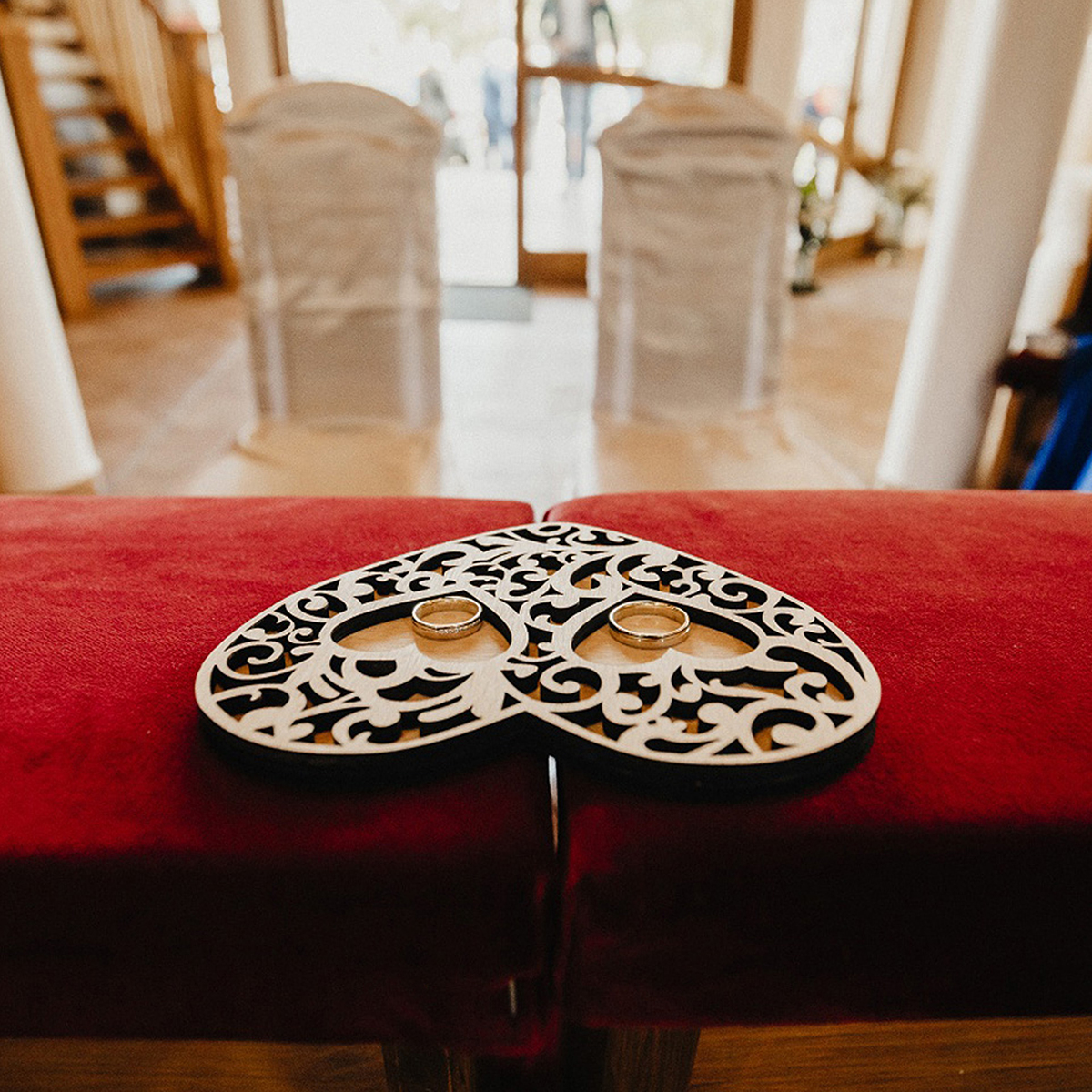 Drevený vyrezávaný podnos na obrúčky v tvare srdiečka vyrobený z kvalitnej preglejky hrúbky 4mm s prírodným hladkým povrchom. Podnos sa skladá sa z 2 vrstiev.