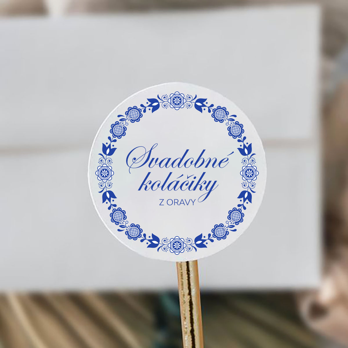 Okrúhlymi nálepkami môžte ozdobiť krabicu so svadobnými koláčikmi. Nálepky sú tlačené UV tlačou na kvalitnú lesklú fóliu. Všetky naše nálepky sú tlačené nezvývateľnou farbou a odolné voči vyblednutiu.