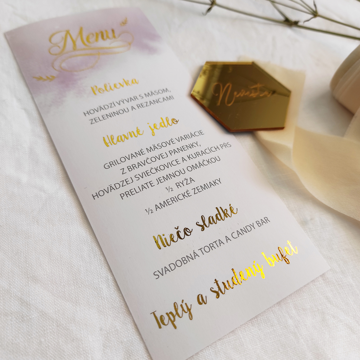 K svadobným oznámeniam sa dajú objednať aj ostatné svadobné tlačoviny v rovnakom štýle.