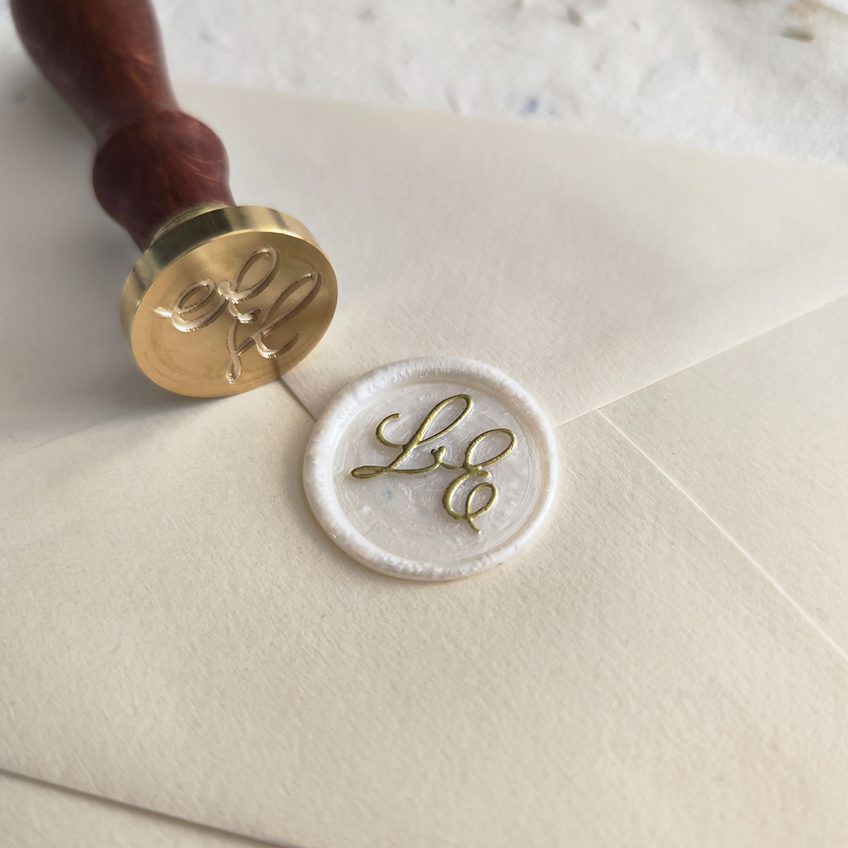 Výroba pečatidla na mieru s vašimi iniciálmi. Takéto originálne pečatidlo môžte potom používať na dozdobenie napr. svadobných oznámení, obálok, scrapbooking alebo firemných tlačovín.