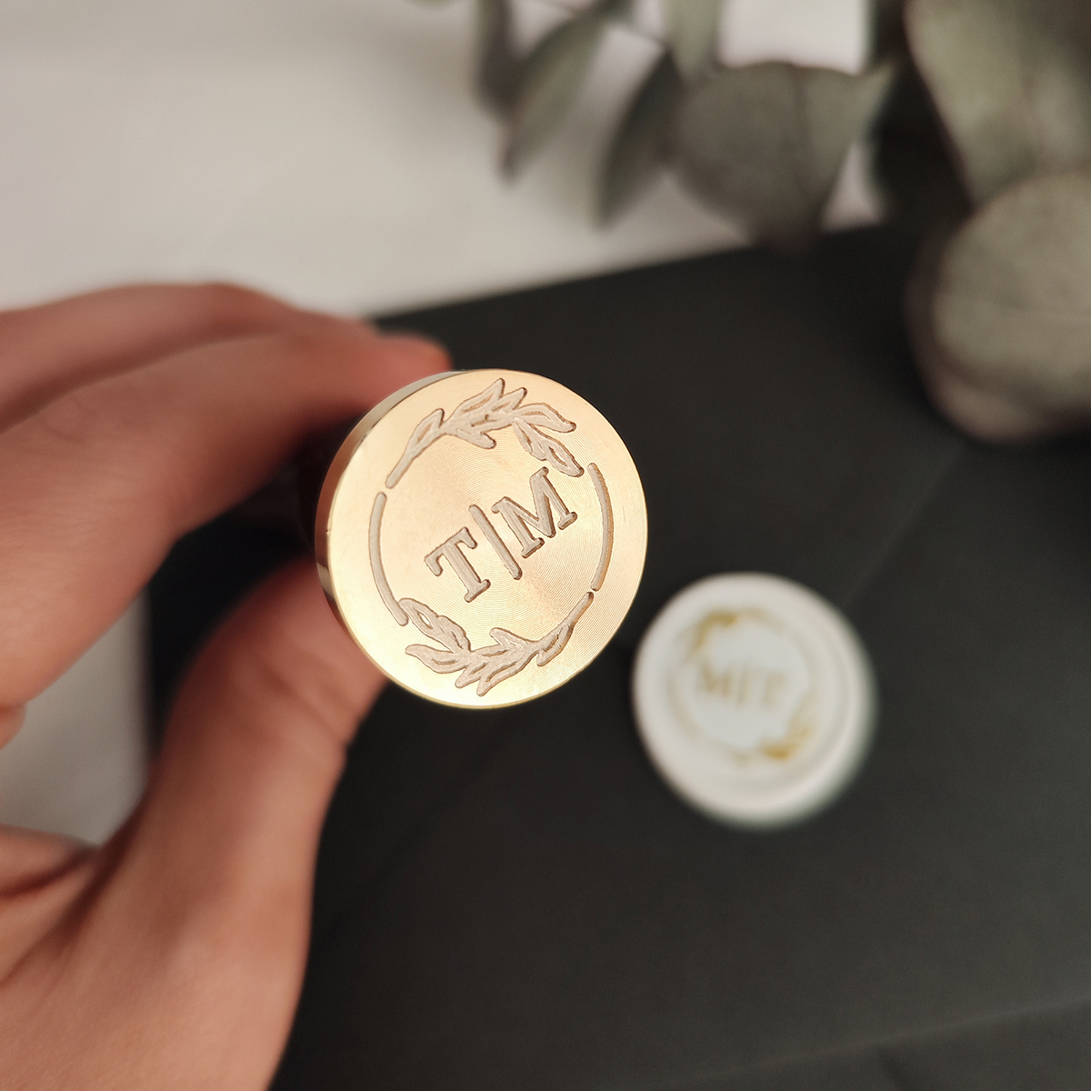 Výroba pečatidla na mieru s vetvičkami s vašimi iniciálmi. Takéto originálne pečatidlo môžte potom používať na dozdobenie napr. svadobných oznámení, obálok, scrapbooking alebo firemných tlačovín.