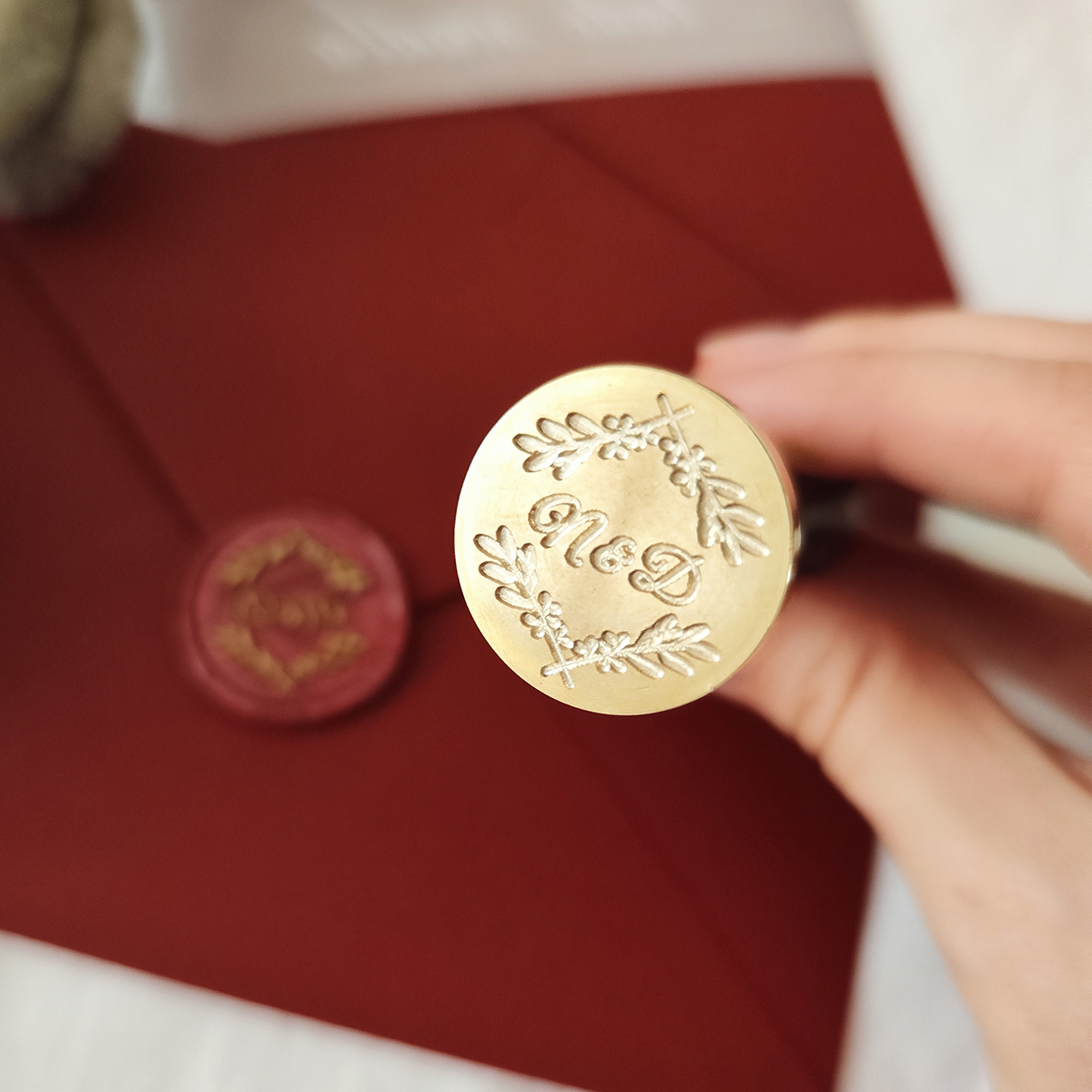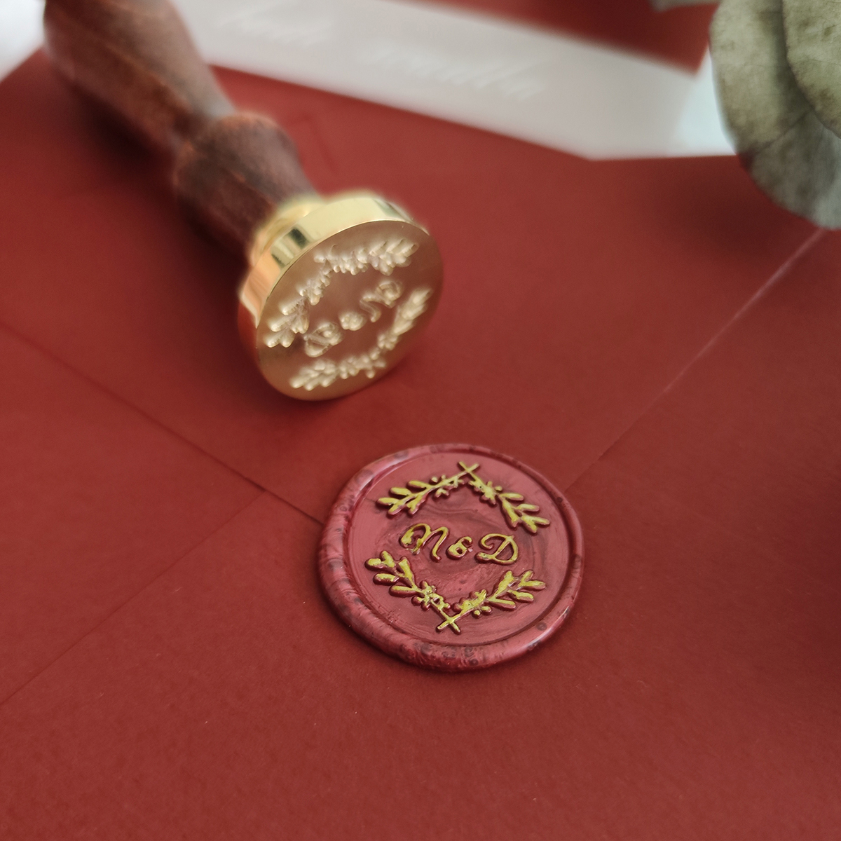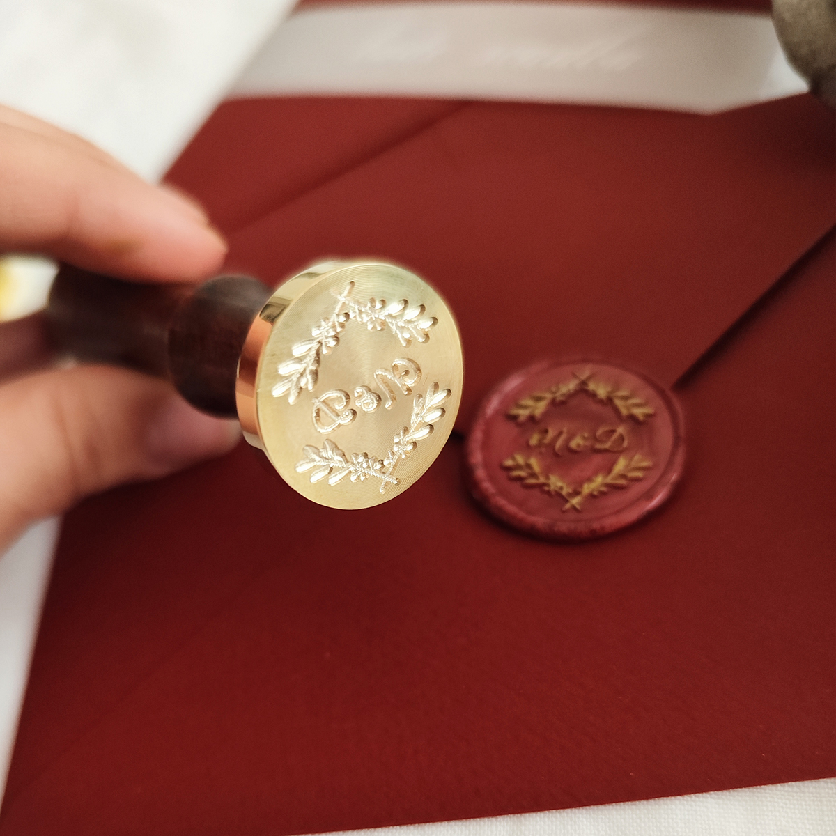 Výroba pečatidla na mieru s vetvičkami s vašimi iniciálmi. Takéto originálne pečatidlo môžte potom používať na dozdobenie napr. svadobných oznámení, obálok, scrapbooking alebo firemných tlačovín.