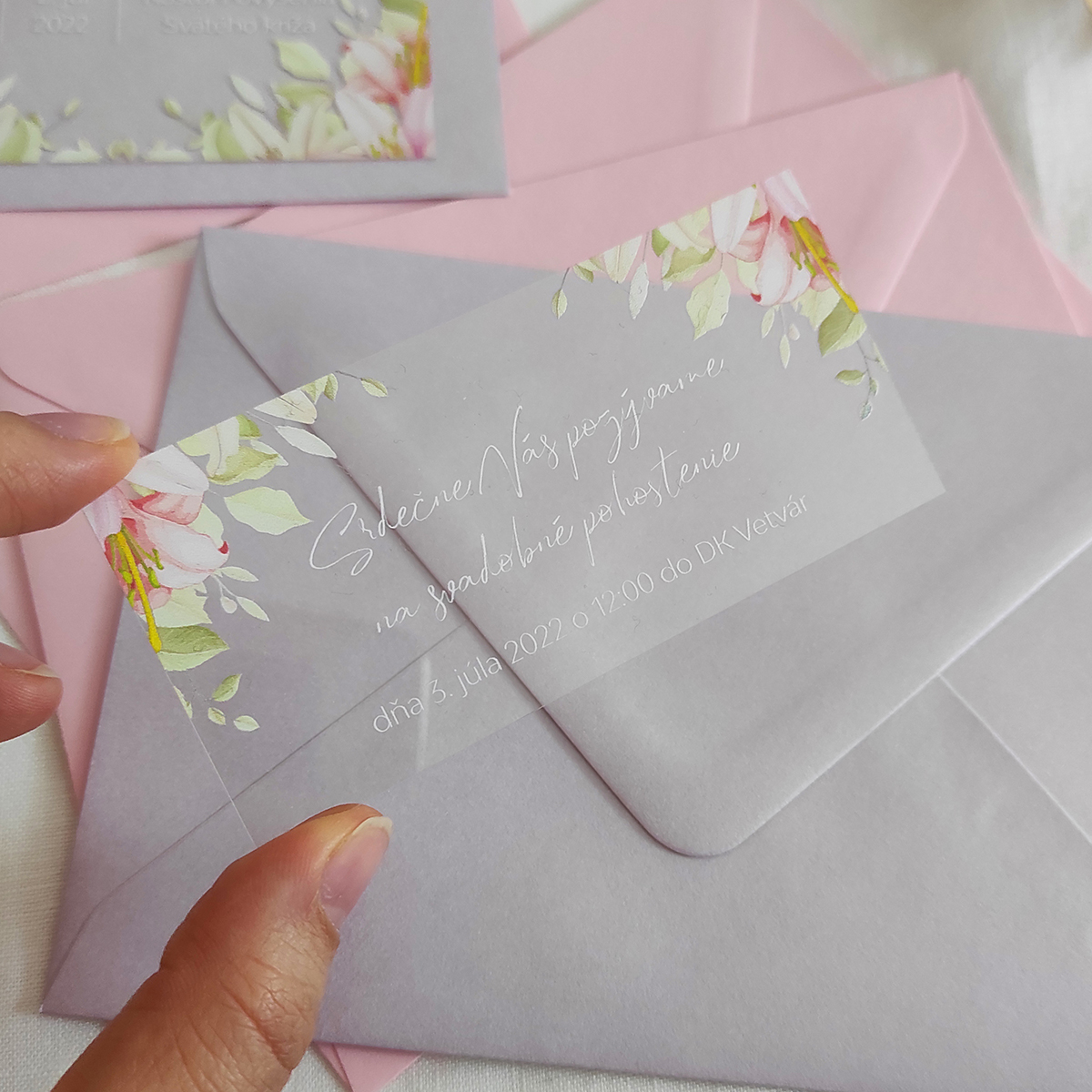 ideatree, oznámenie, svadba, svadobné oznámenie, transparentné oznámenie, priesvitné, kvety, nové mesto nad váhom