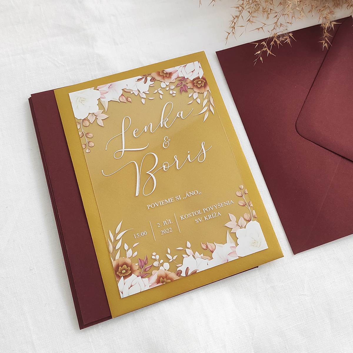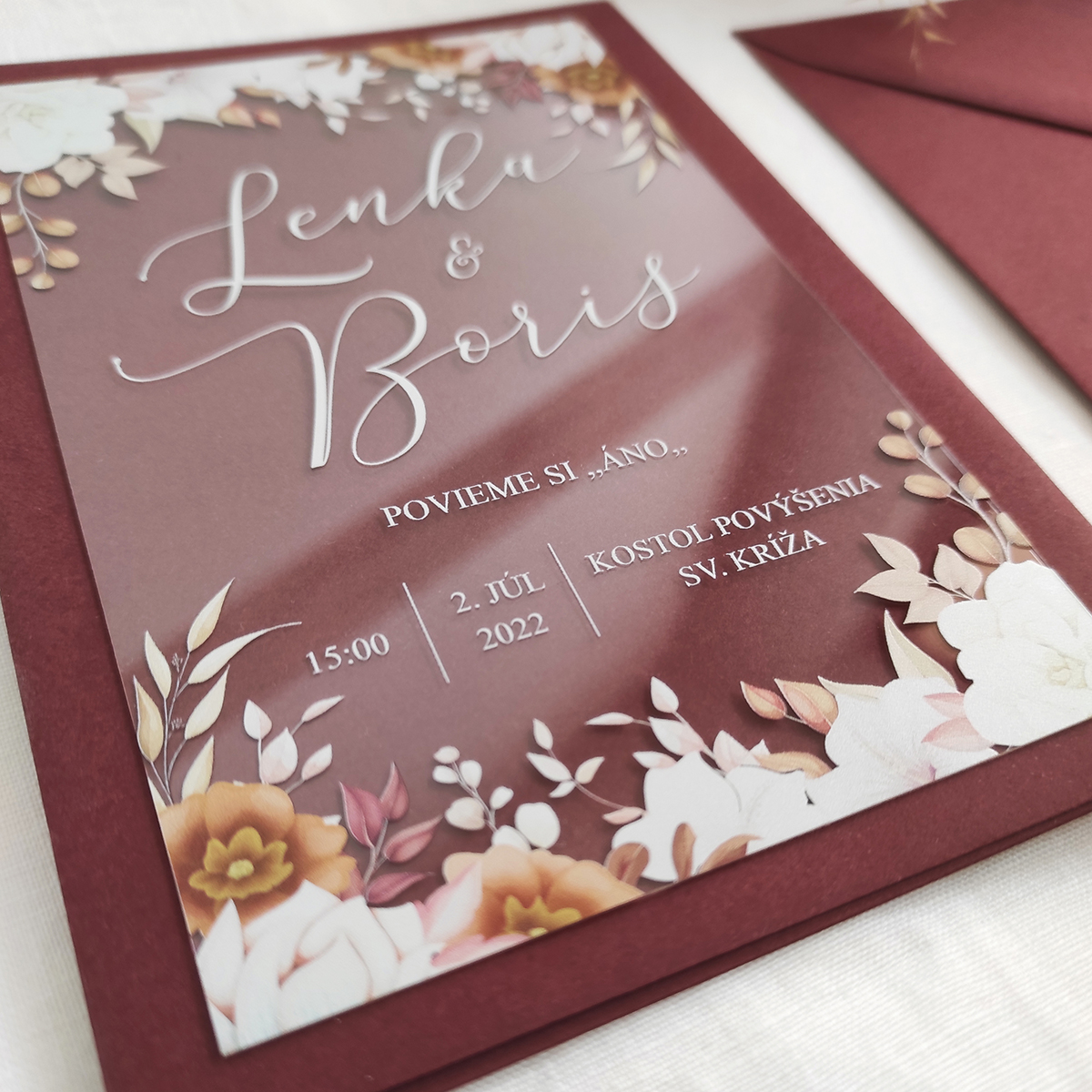 ideatree, oznámenie, svadba, svadobné oznámenie, transparentné oznámenie, priesvitné, kvety, nové mesto nad váhom