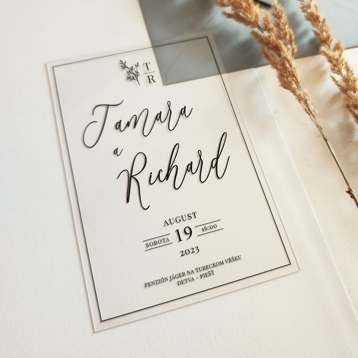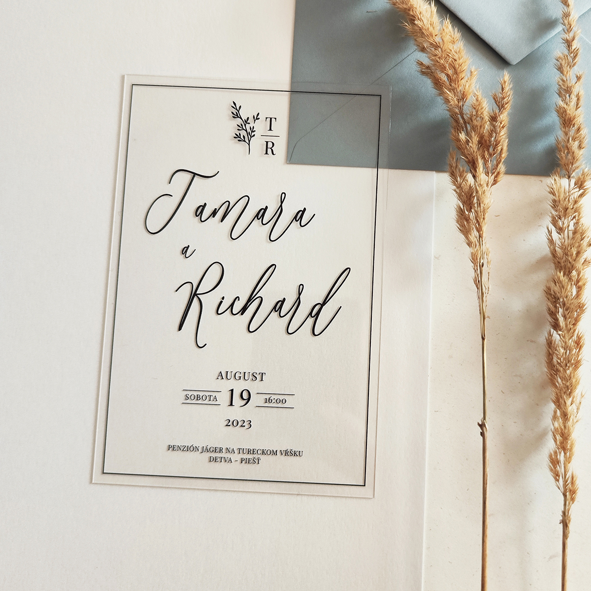 Jednoduché a zároveň veľmi štýlové a moderné transparentné oznámenie. Oznámenie je tlačené čiernou UV tlačou na transparentné plexi. Vďaka UV tlači je text mierne vystúpený, akoby 3D.