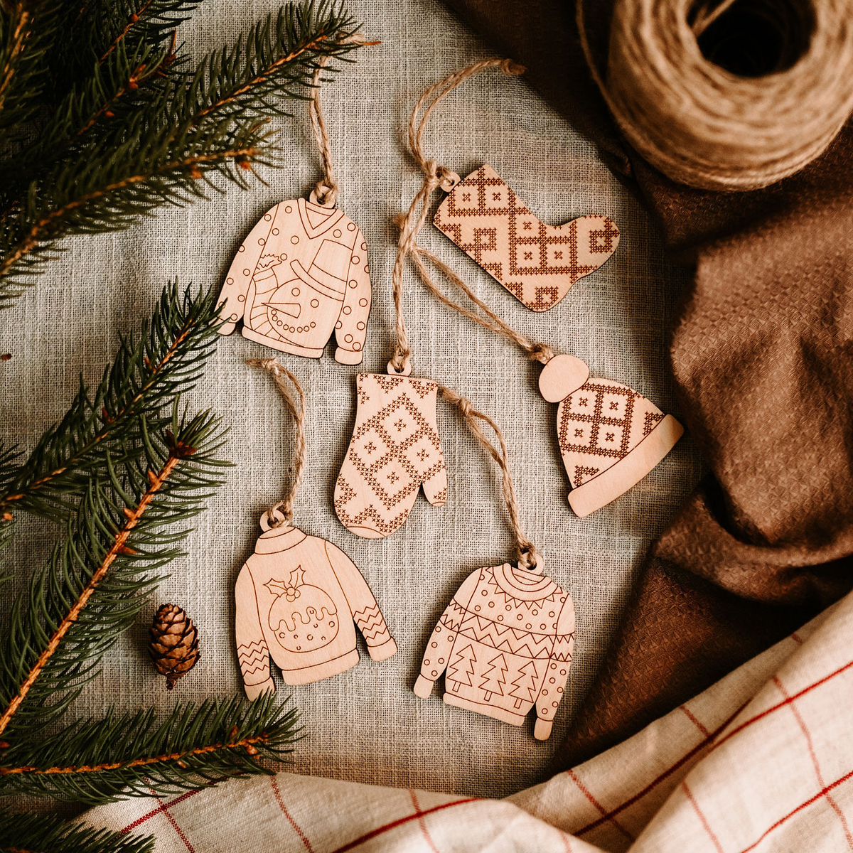 Sada 3 ks drevených gravírovaných ozdôb s vyšívaným motívom - čiapka, rukavica a čižma. Sada je dodávaná v darčekovom balení. Ozdôbky tak môžte darovať.