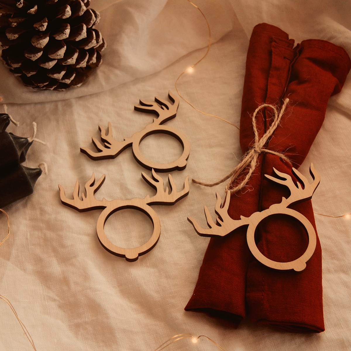 Set 6ks drevených krúžkov na servítky s motívom jeleňa. Krúžky sú vyrezané z kvalitnej preglejky hrúbky 4mm s prírodným hladkým povrchom.