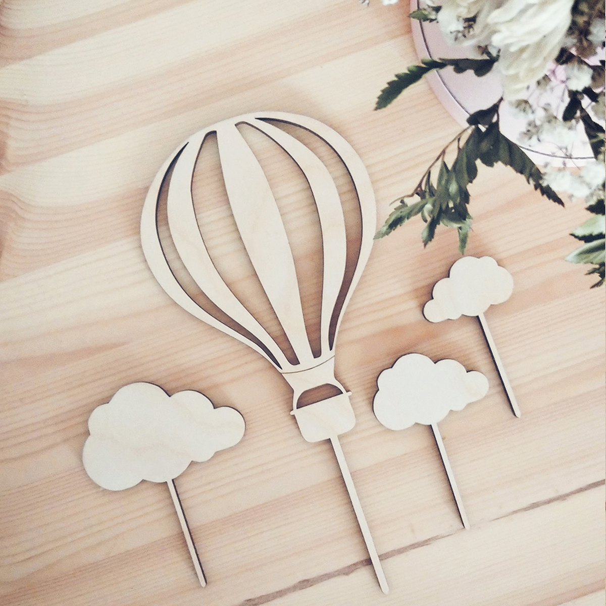 Drevené zápichy na tortu s balónom a obláčikmi skvelo doplnia tématickú tortu alebo koláč. Zápichy sú vyrobené z kvalitnej preglejky hrúbky 4mm.
